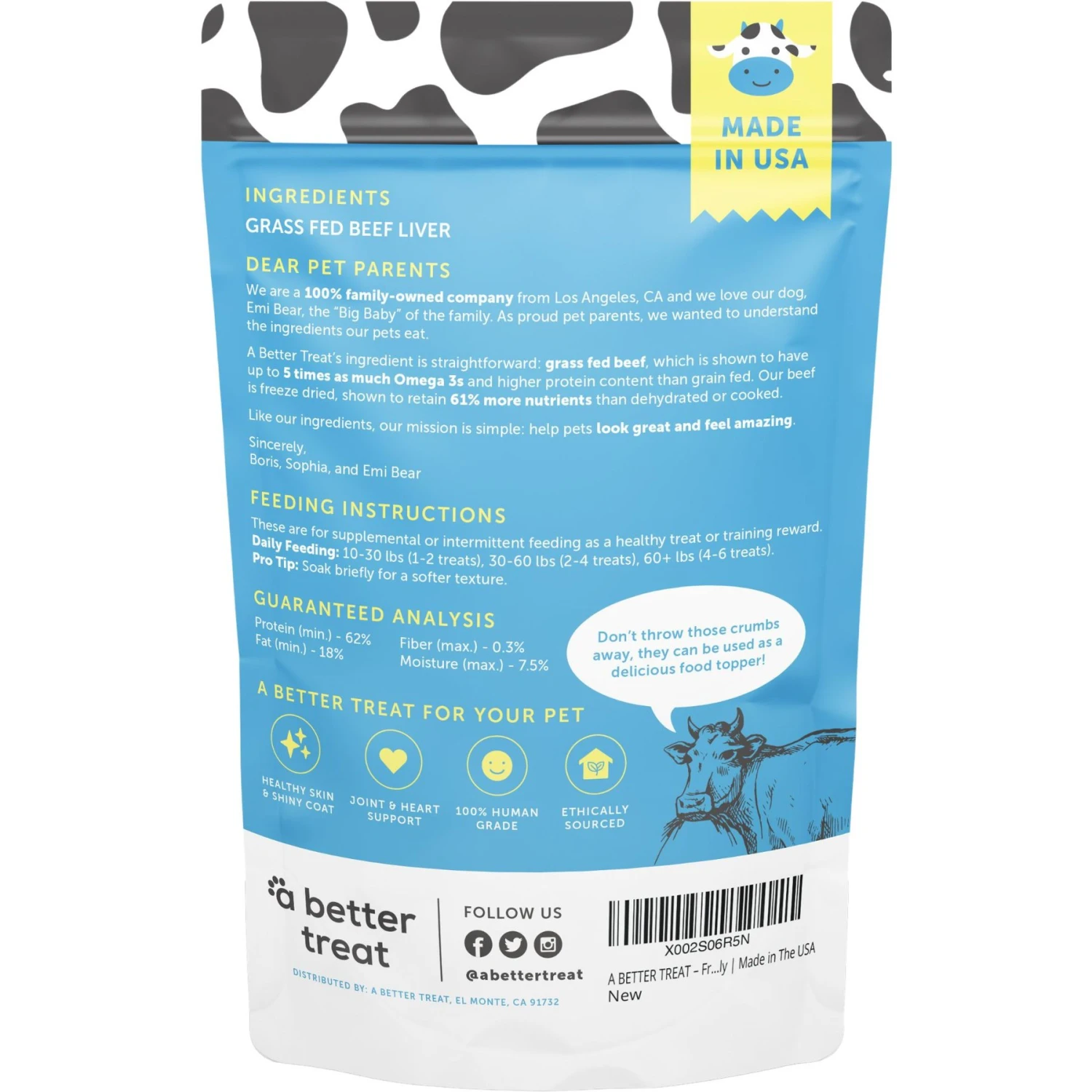 - Made in the USA using just a single ingredient—sustainably sourced grass-fed beef liver.