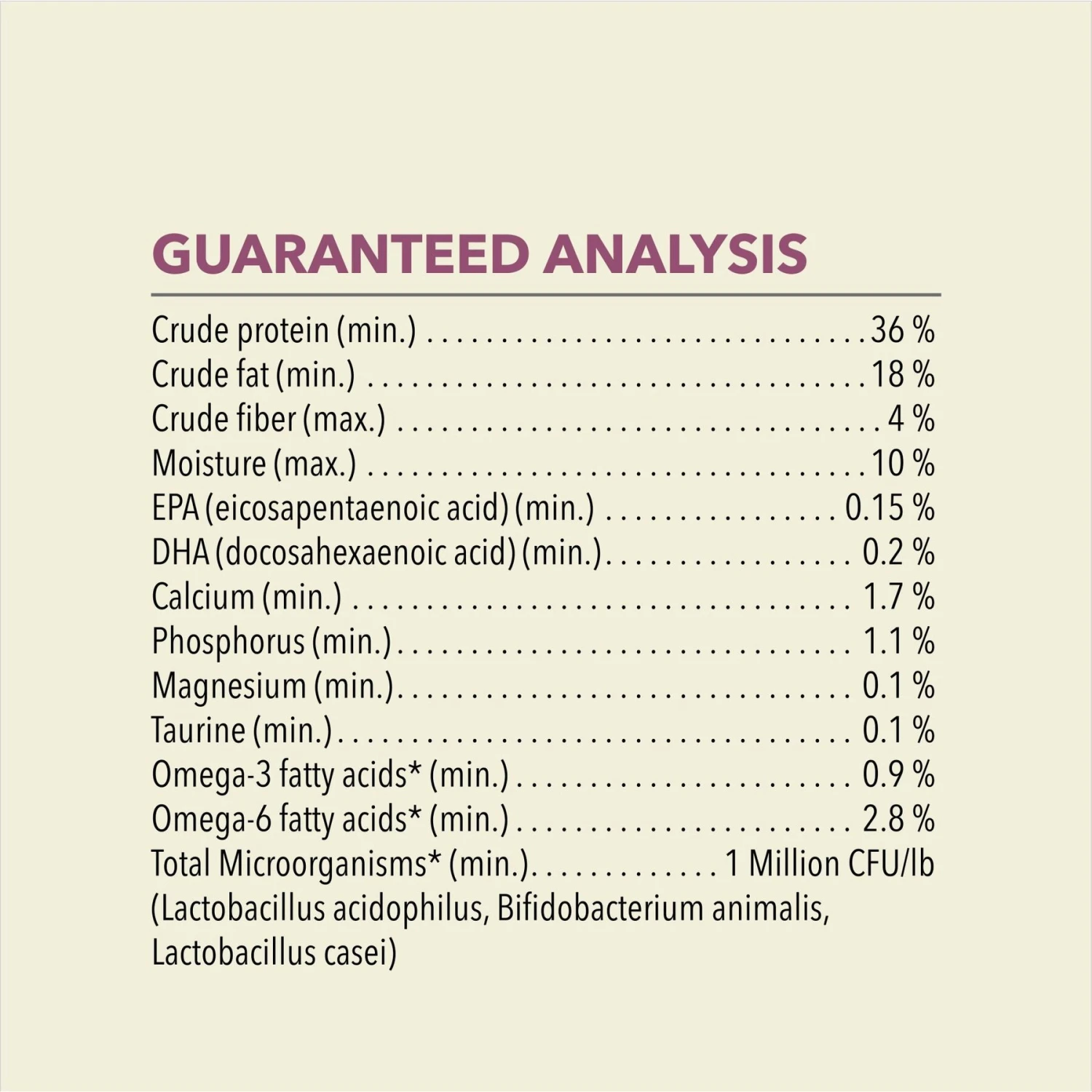 - Fiber, plus a blend of probiotics for cats, helps provide healthy digestive support.