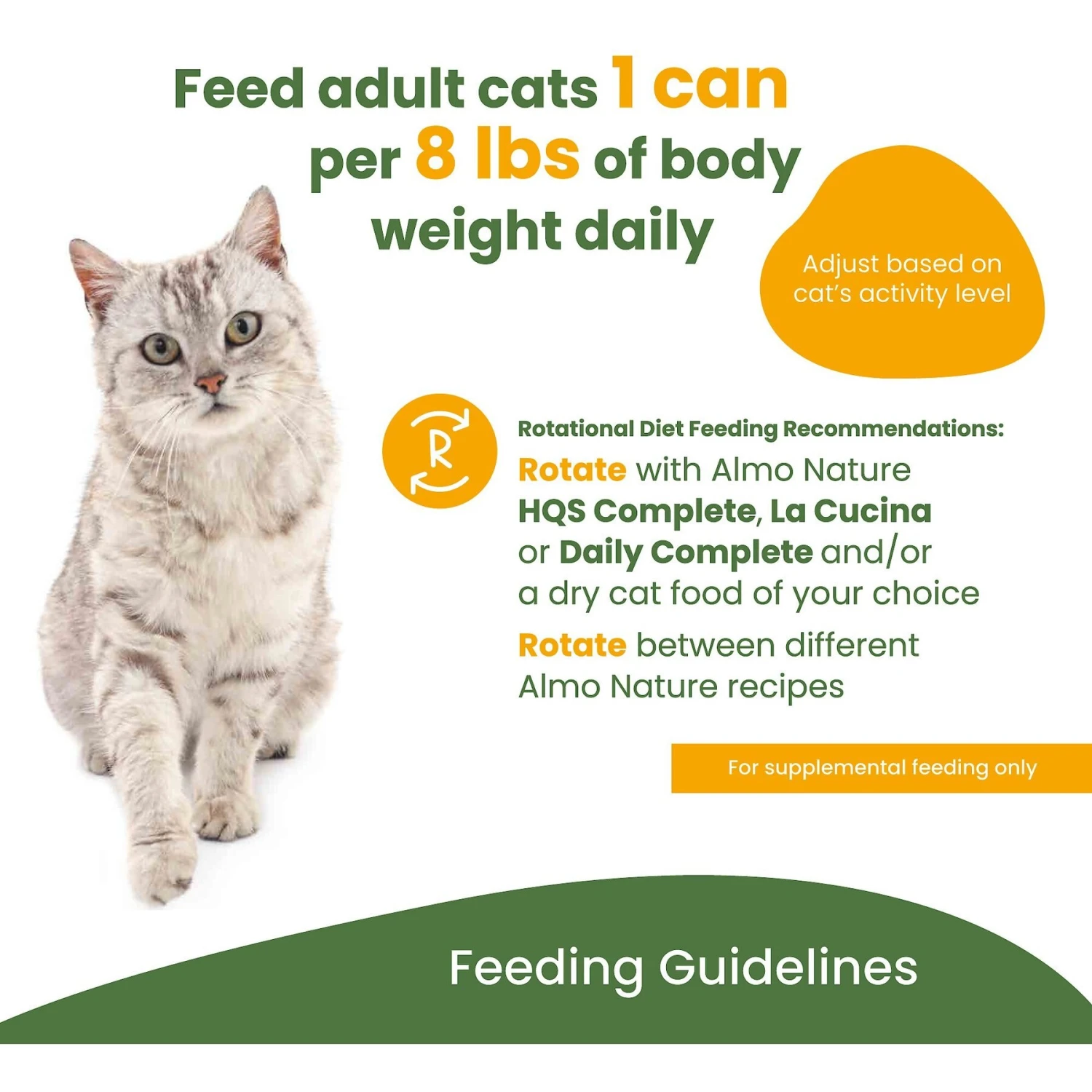 - 100% natural pet food made without synthetic vitamins. A rotational diet is recommended—rotate with other Almo Nature recipes and supplement with dry food.
