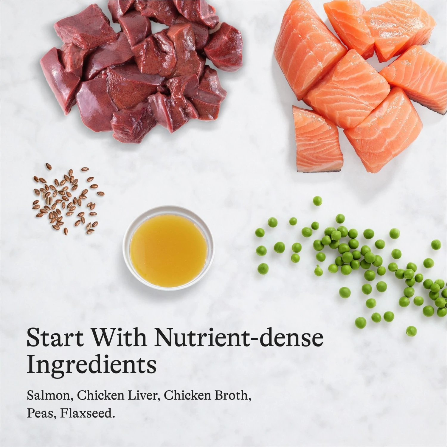 - Well-rounded, balanced recipe provides 9% crude protein from real salmon as the first ingredient. L-Carnitine supports normal fat metabolism and lean muscle mass.