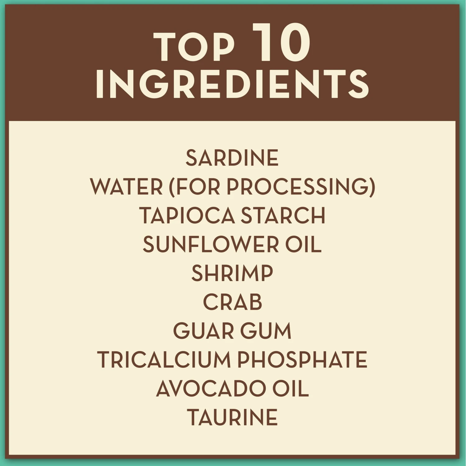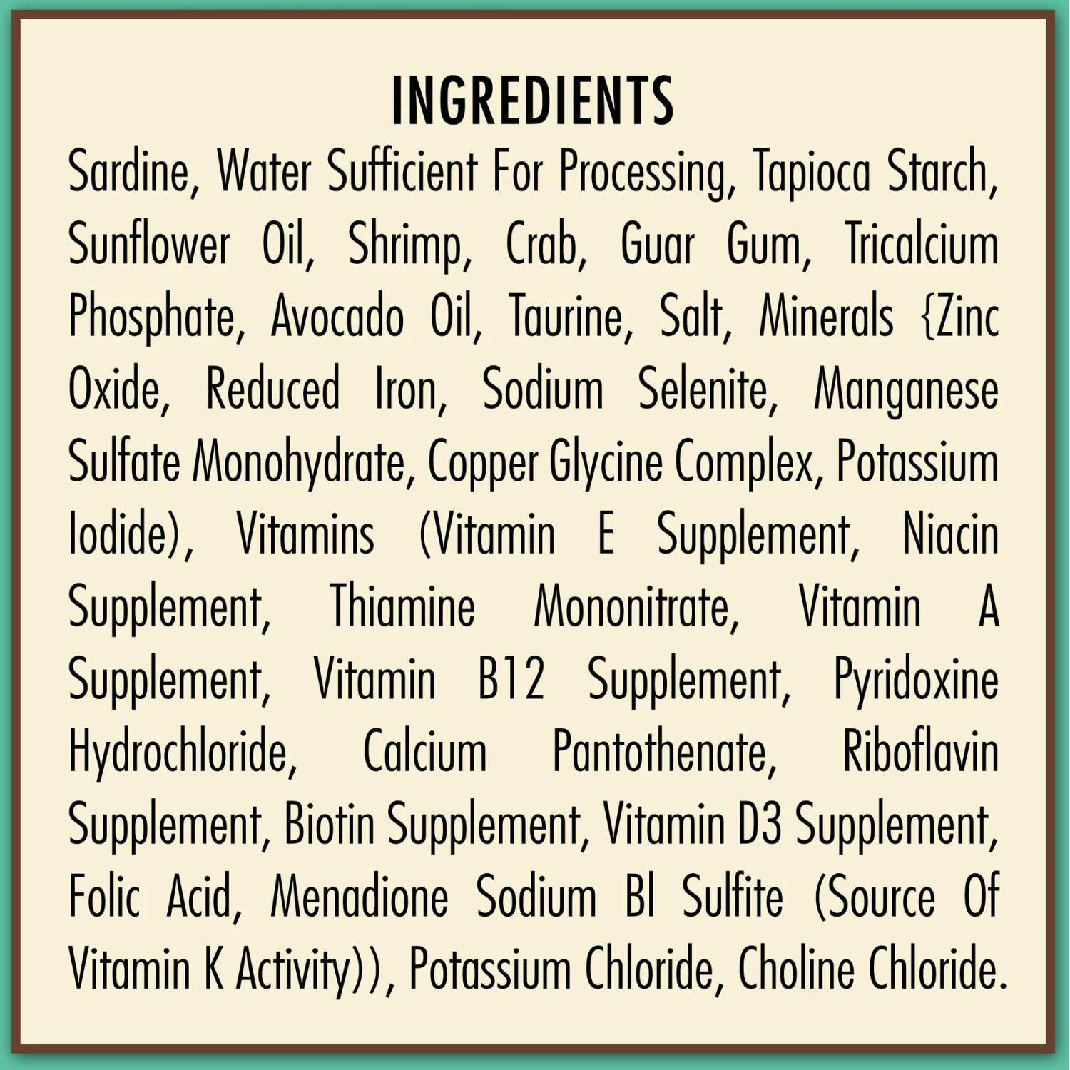 - Sardines and fish broth are the top ingredients, plus shrimp and crab for the animal-sourced protein your kitty thrives on.