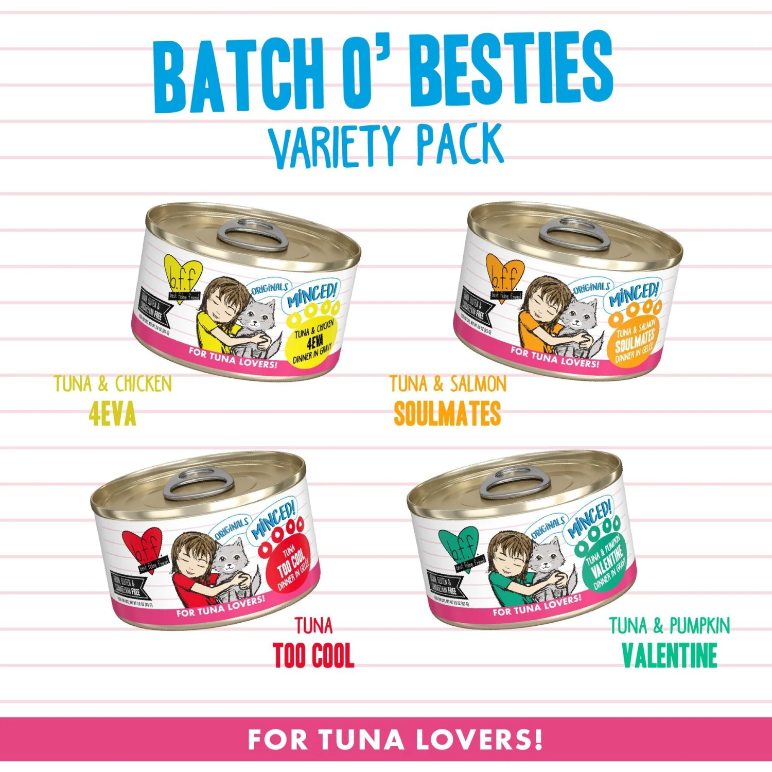 - Variety pack features wild-caught tuna as the top ingredient for animal-sourced protein and omegas to support overall health.