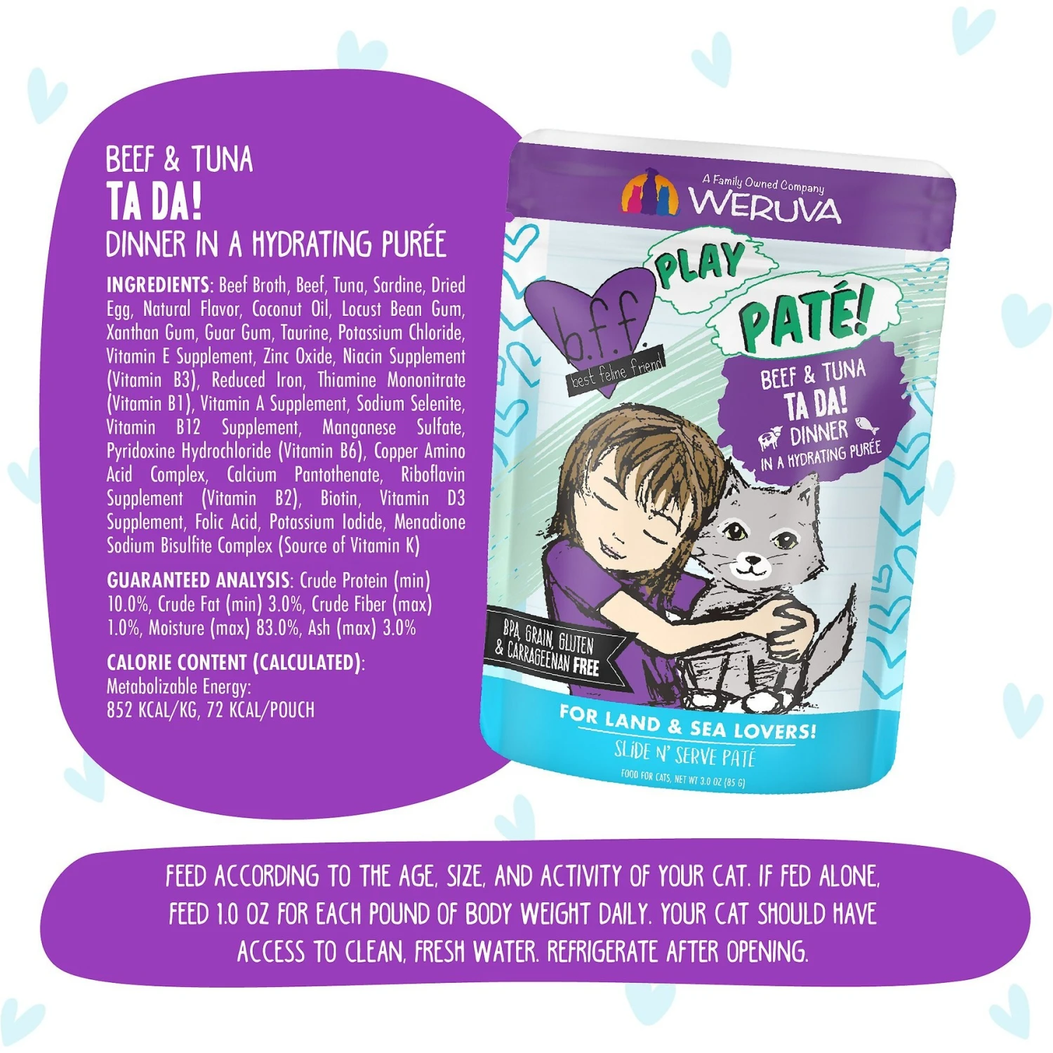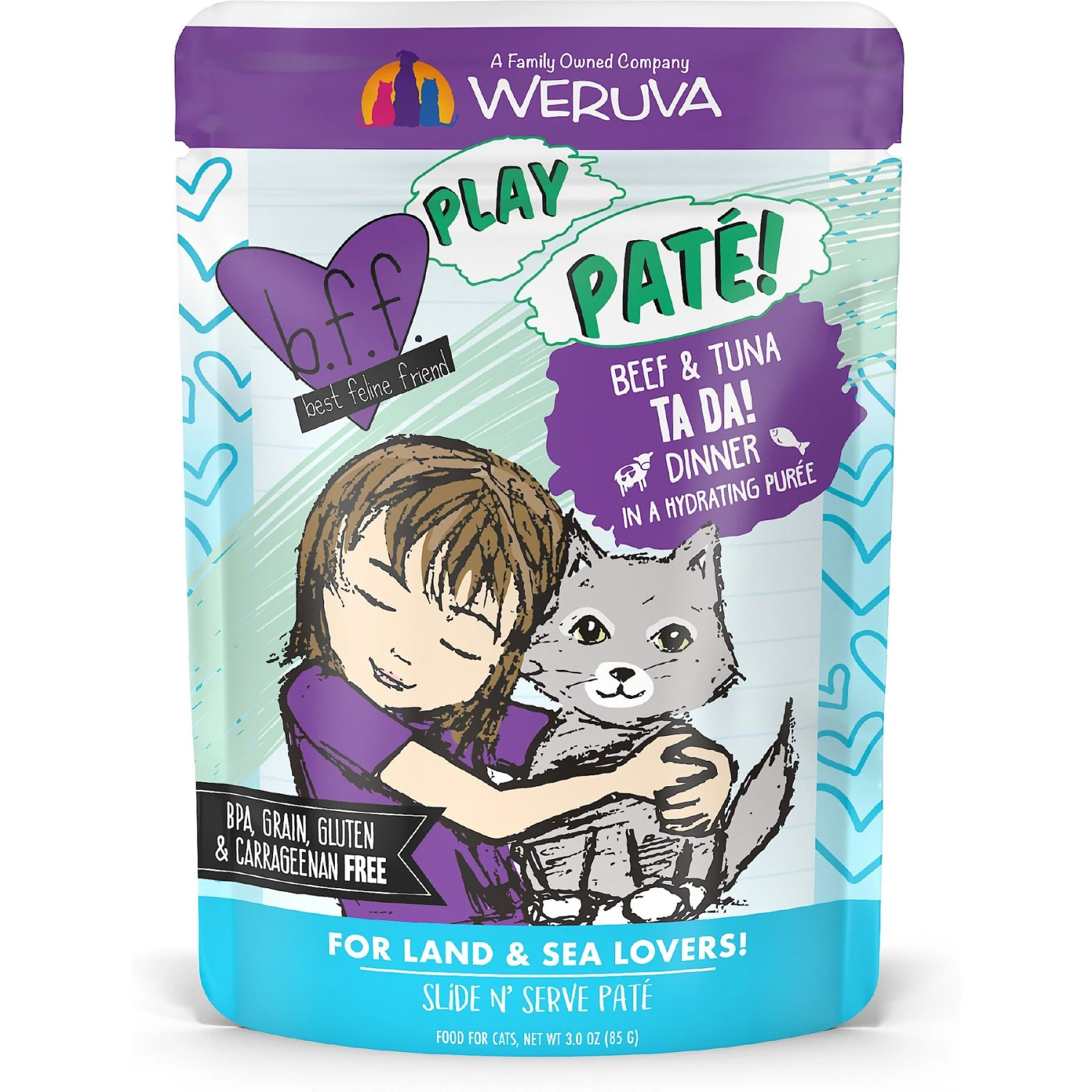Be the first to review “BFF Play Pate Lovers Beef & Tuna Ta Da Wet Cat Food, 3-oz Pouch, Pack Of 12” Cancel reply