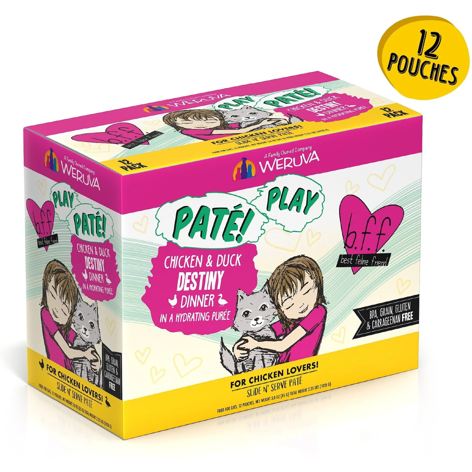 Be the first to review “BFF Play Pate Lovers Chicken & Duck Destiny Wet Cat Food, 3-oz Pouch, Pack Of 12” Cancel reply