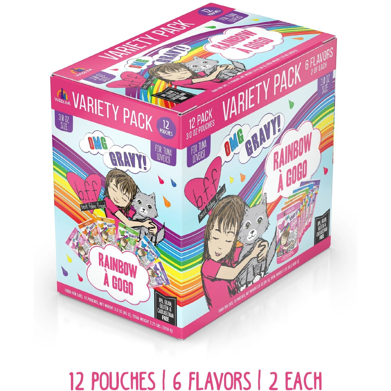 Be the first to review “BFF Rainbow A Gogo Variety Pack Wet Cat Food Pouches, 3-oz, Case Of 12” Cancel reply