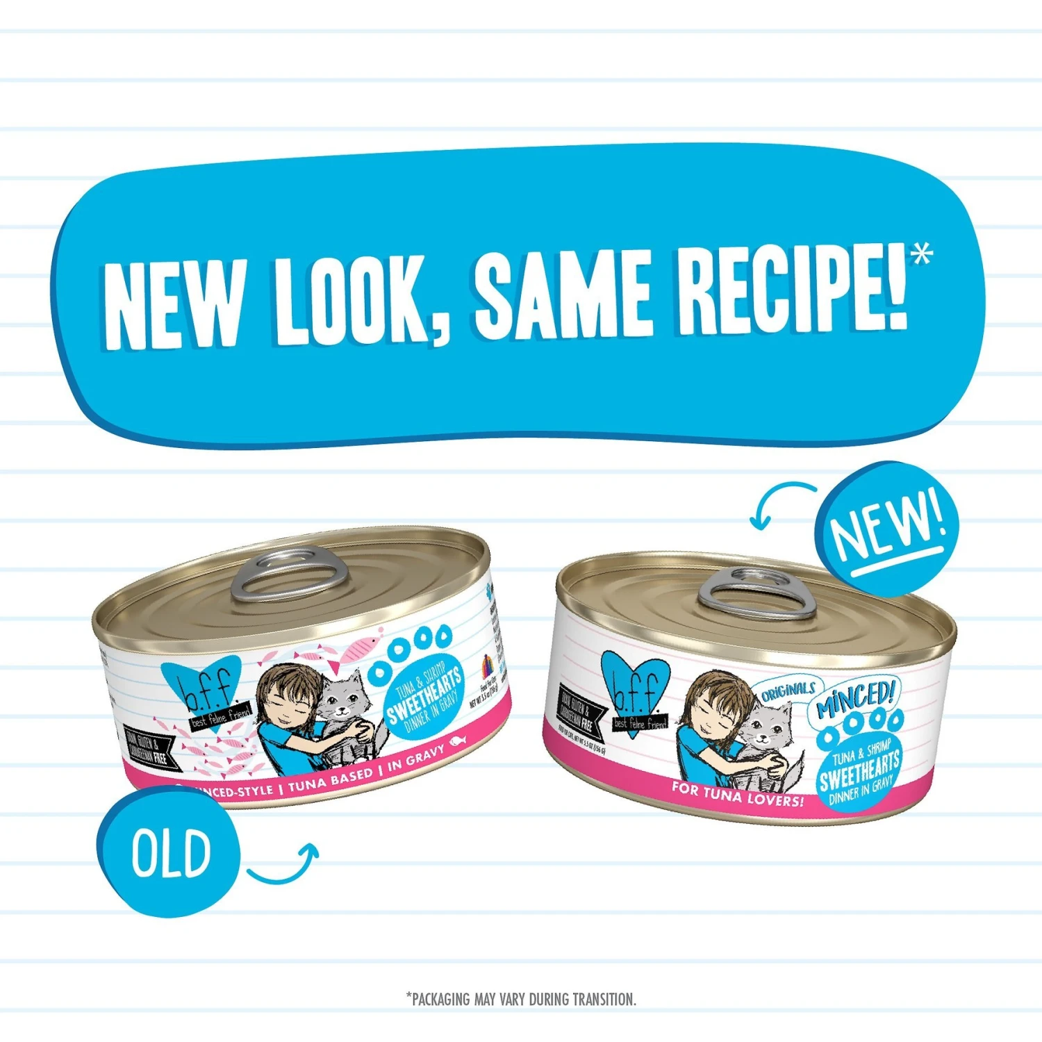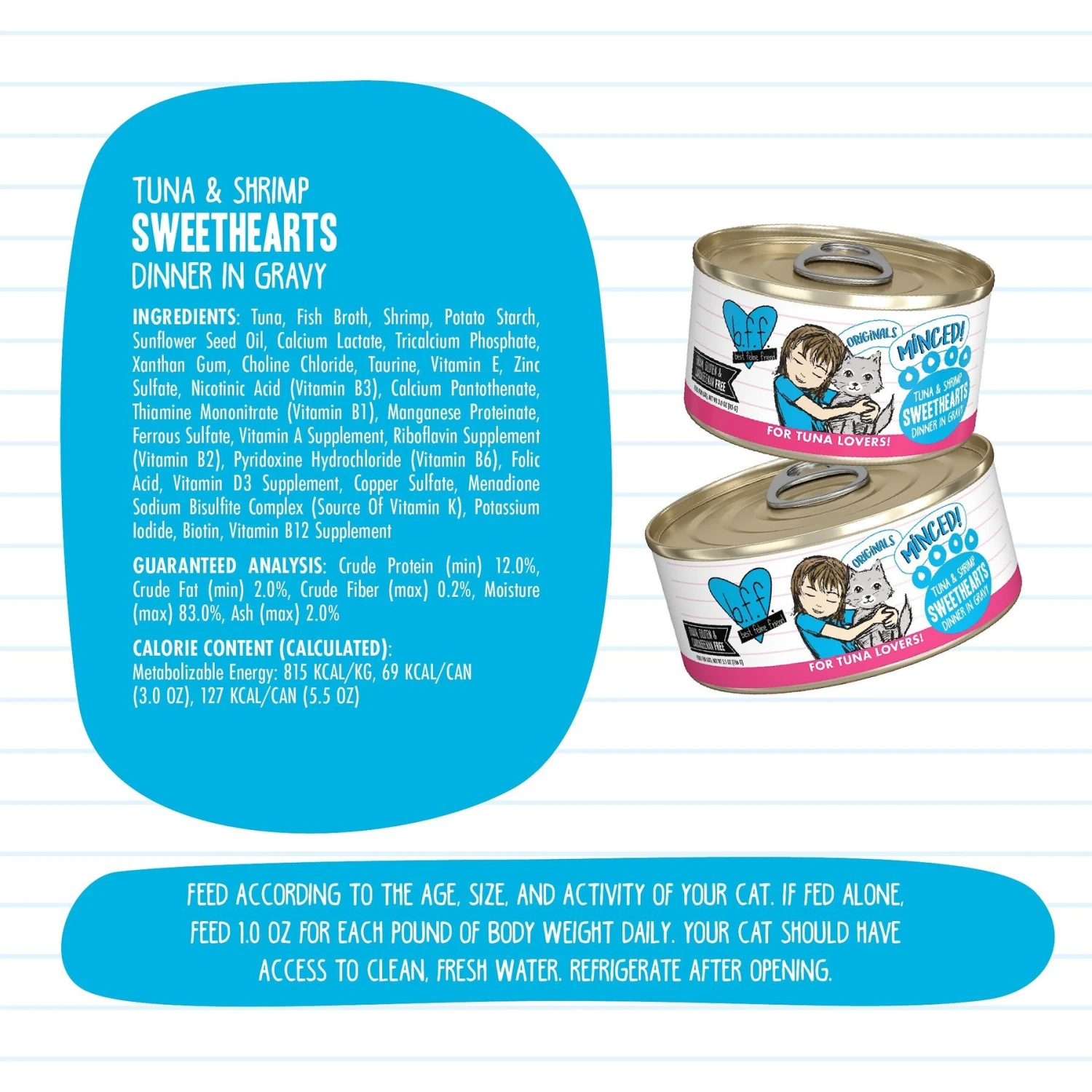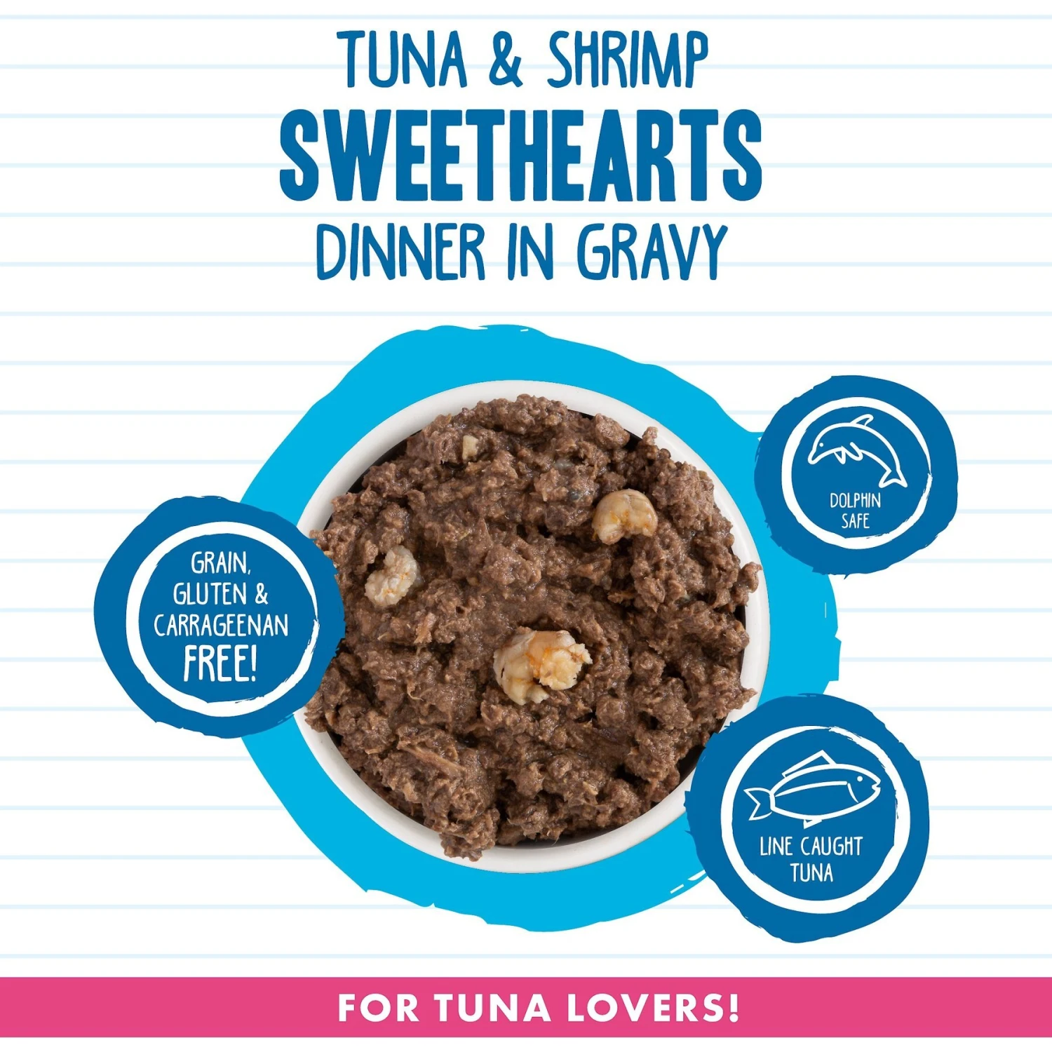 | Flavor | Tuna & Shrimp Sweethearts in Gravy, Tuna & Chicken 4-Eva in Gravy, Tuna Too Cool in Gelee, Variety Pack, Tuna & Tilapia Twosome in Gelee, Tuna & Pumpkin Valentine in Gravy, Variety Pack: Big Feline Feast, Tuna & Chicken Chuckles in Gelee, Tuna & Salmon Soulmates in Gelee, Tuna & Bonito Be Mine in Gelee |