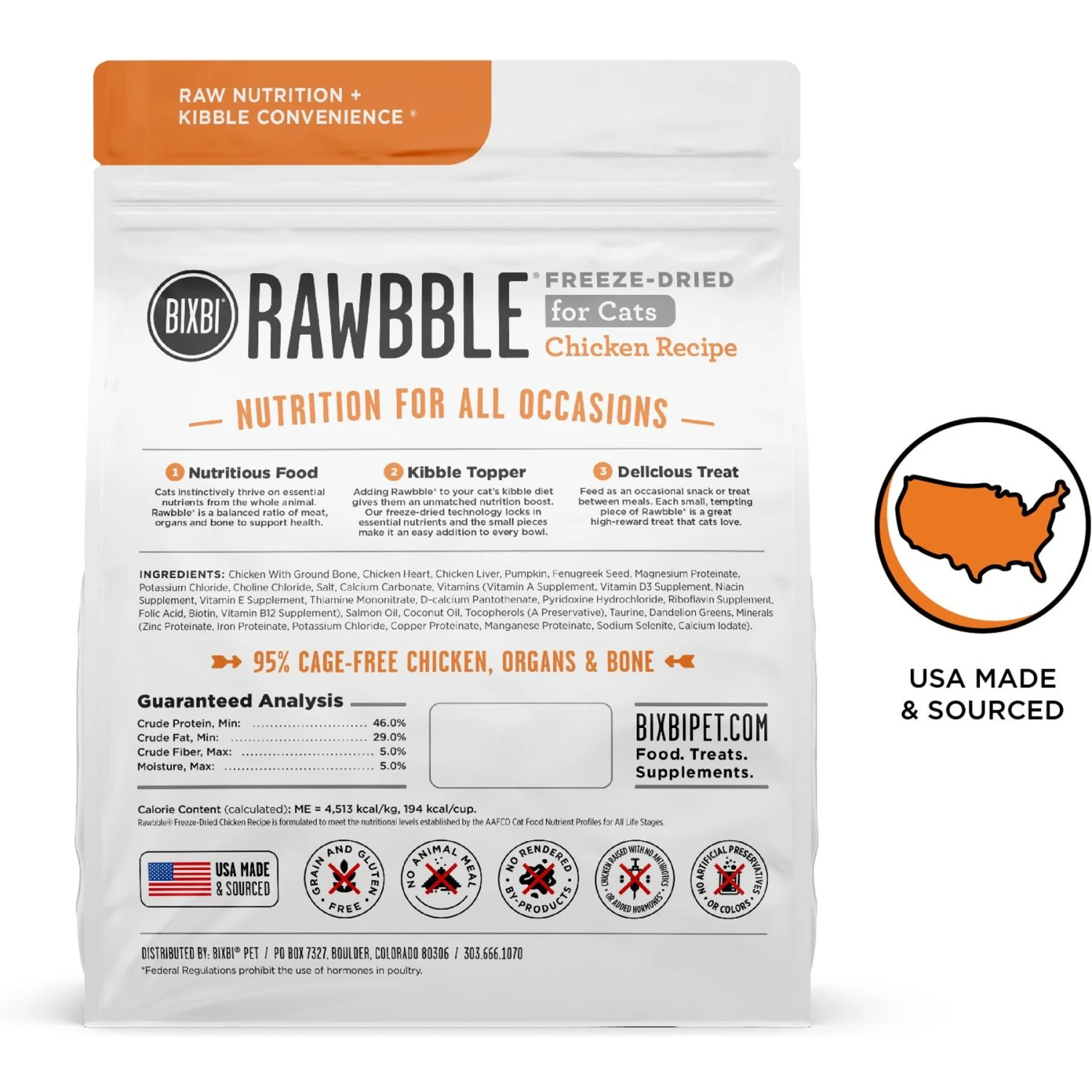 - Made with USDA human-grade inspected, free-range chicken that is sourced from the USA.