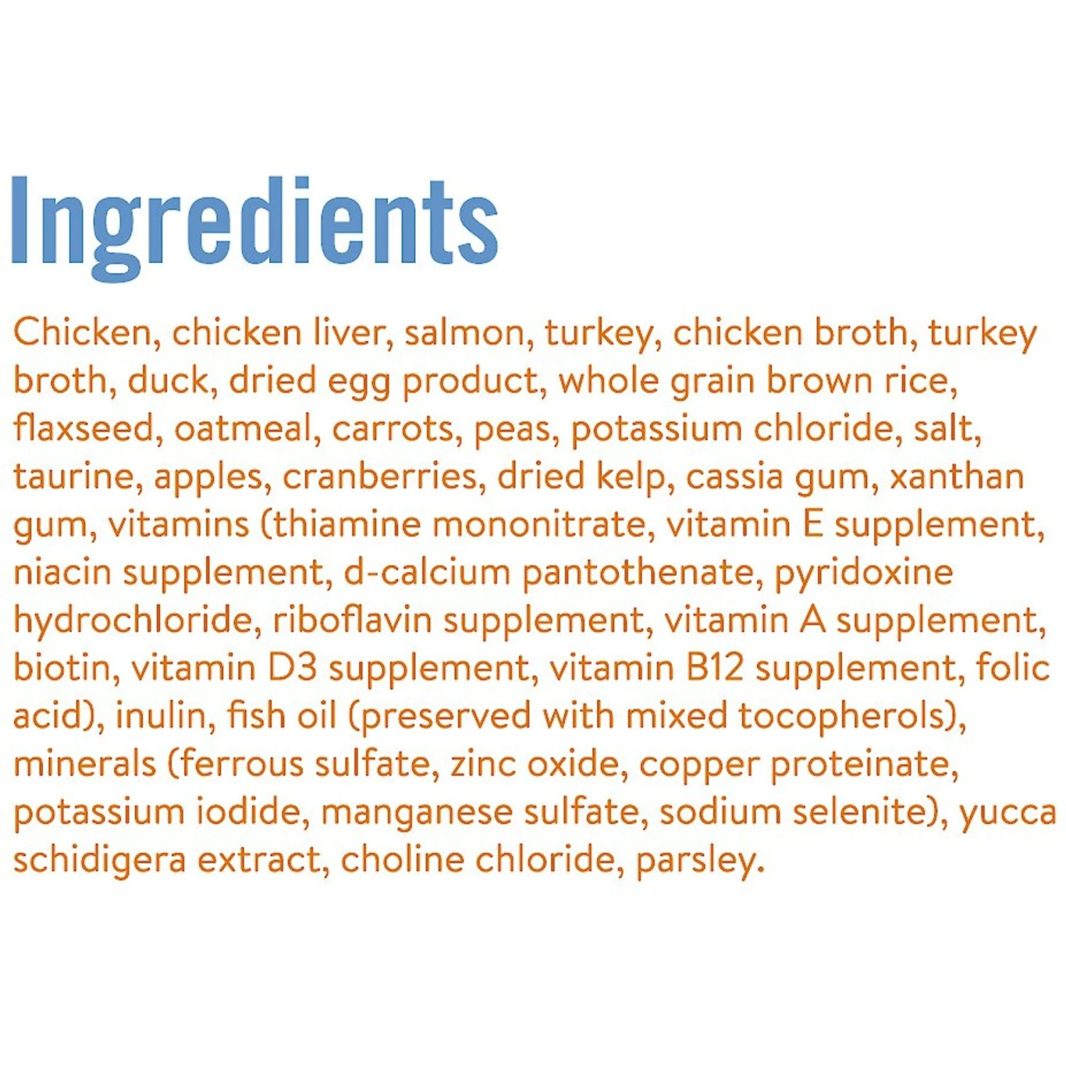 - Real chicken is the number one ingredient—it’s blended purr-fectly with turkey, duck and salmon for an irresistible taste.