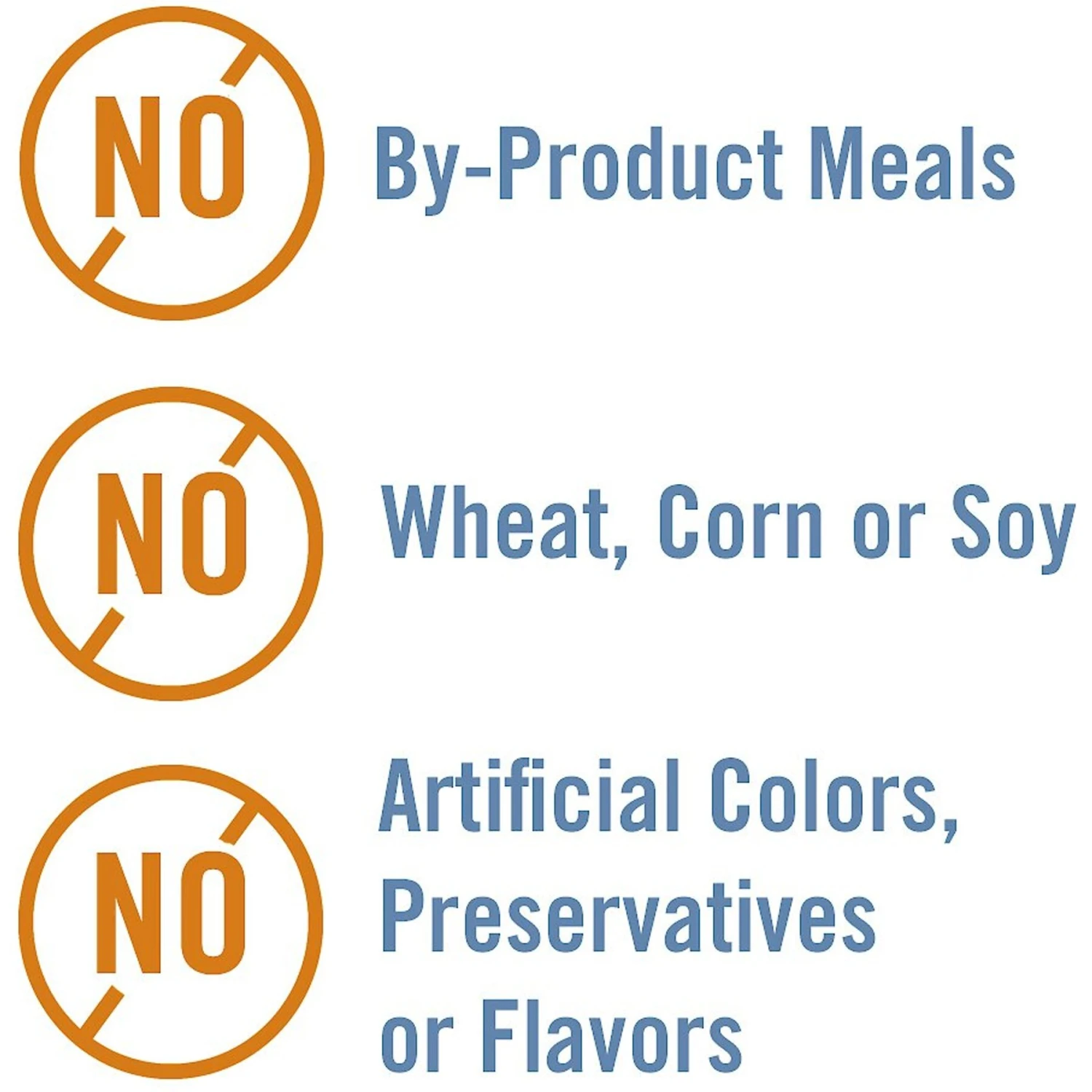 - Contains no by-product meals, corn, wheat, soy or artificial colors, flavors or preservatives.