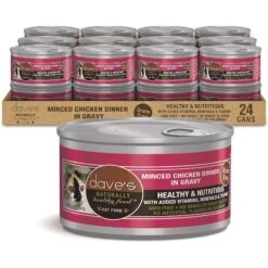 Be the first to review “Dave’s Pet Food Minced Chicken Dinner In Gravy Recipe Wet Cat Food, 2.8-oz Can, Case Of 24” Cancel reply
