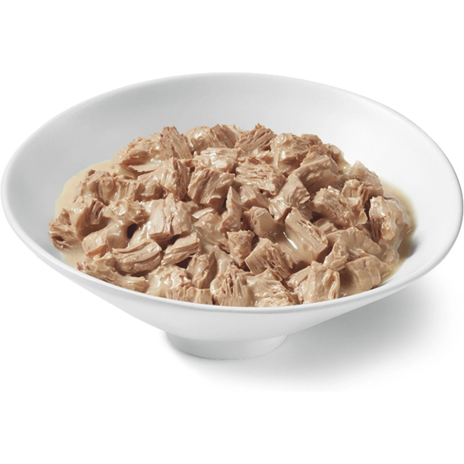 - Made with real chicken in slow-cooked meaty cuts with poultry broth.