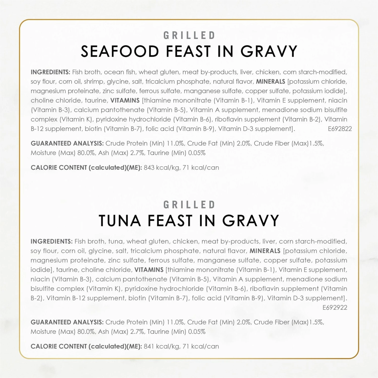 - Crafted with real seafood, tuna or salmon in a light, savory gravy and a blend of vitamins and minerals.