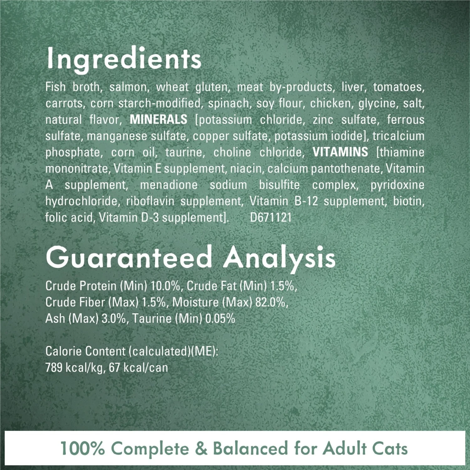 - Crafted in partnership with our expert chefs and nutritionists with real, high-quality ingredients, including real salmon, tomatoes, carrots and spinach in a silky Fancy Feast broth.