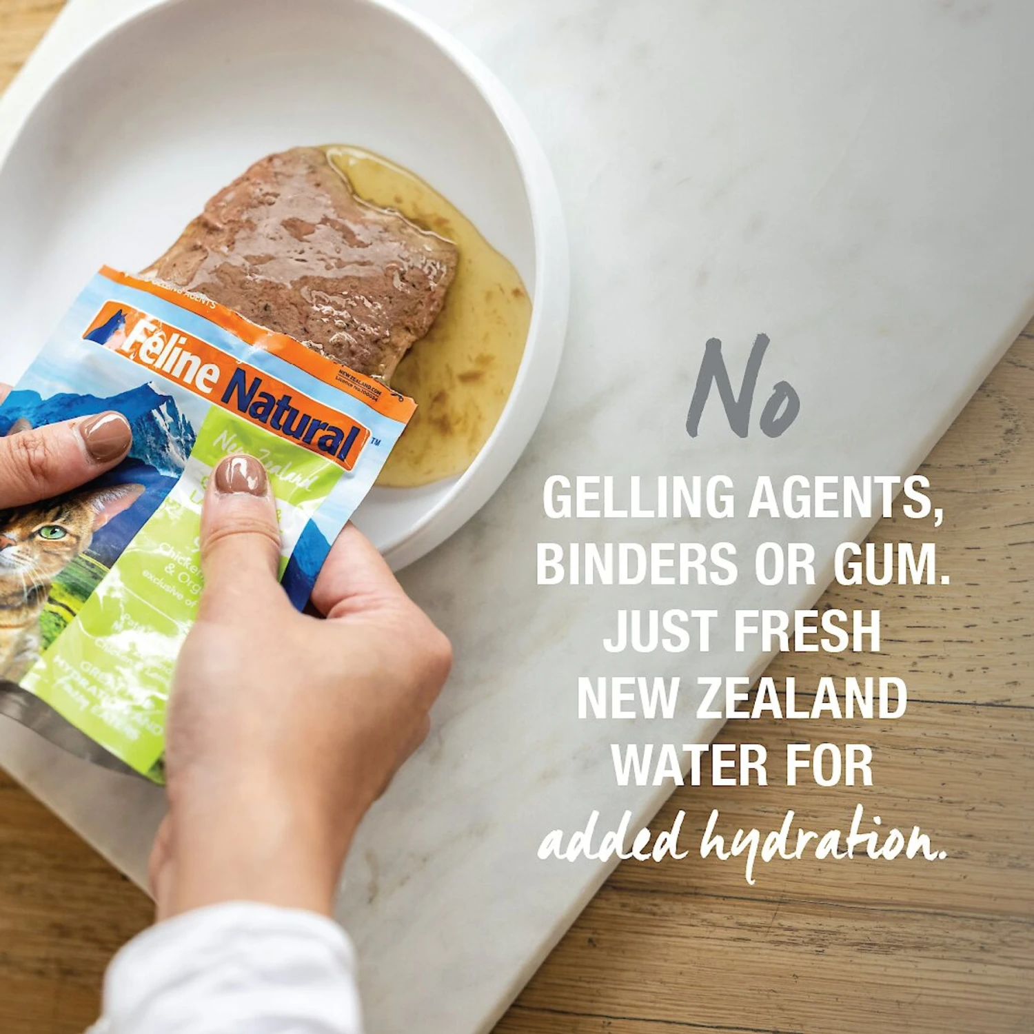 - No gelling agents, binders or gums.