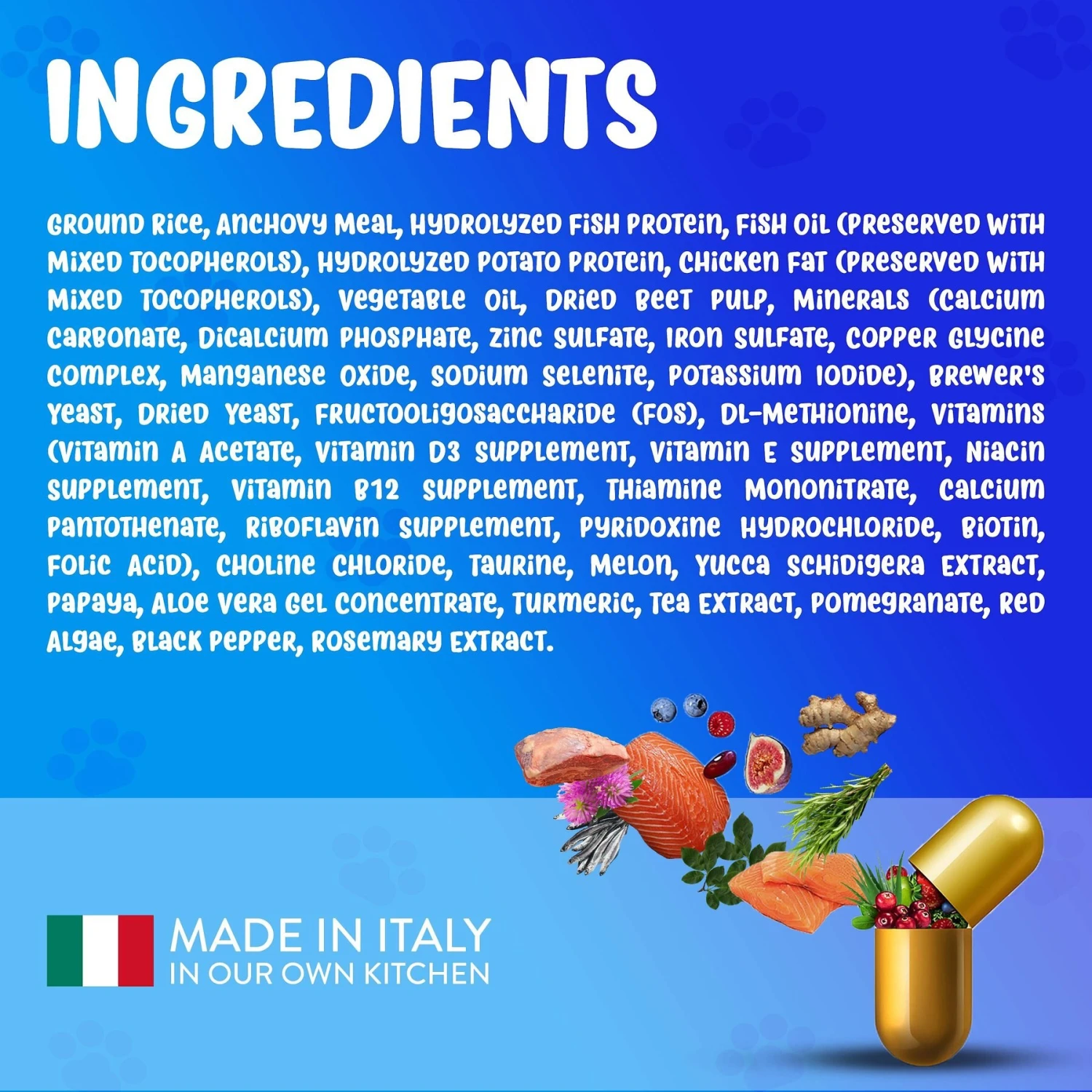 - Made with wild-caught anchovy rich in Omega-3, and an optimal balance of Omega-6 and Omega-3 fatty acids.