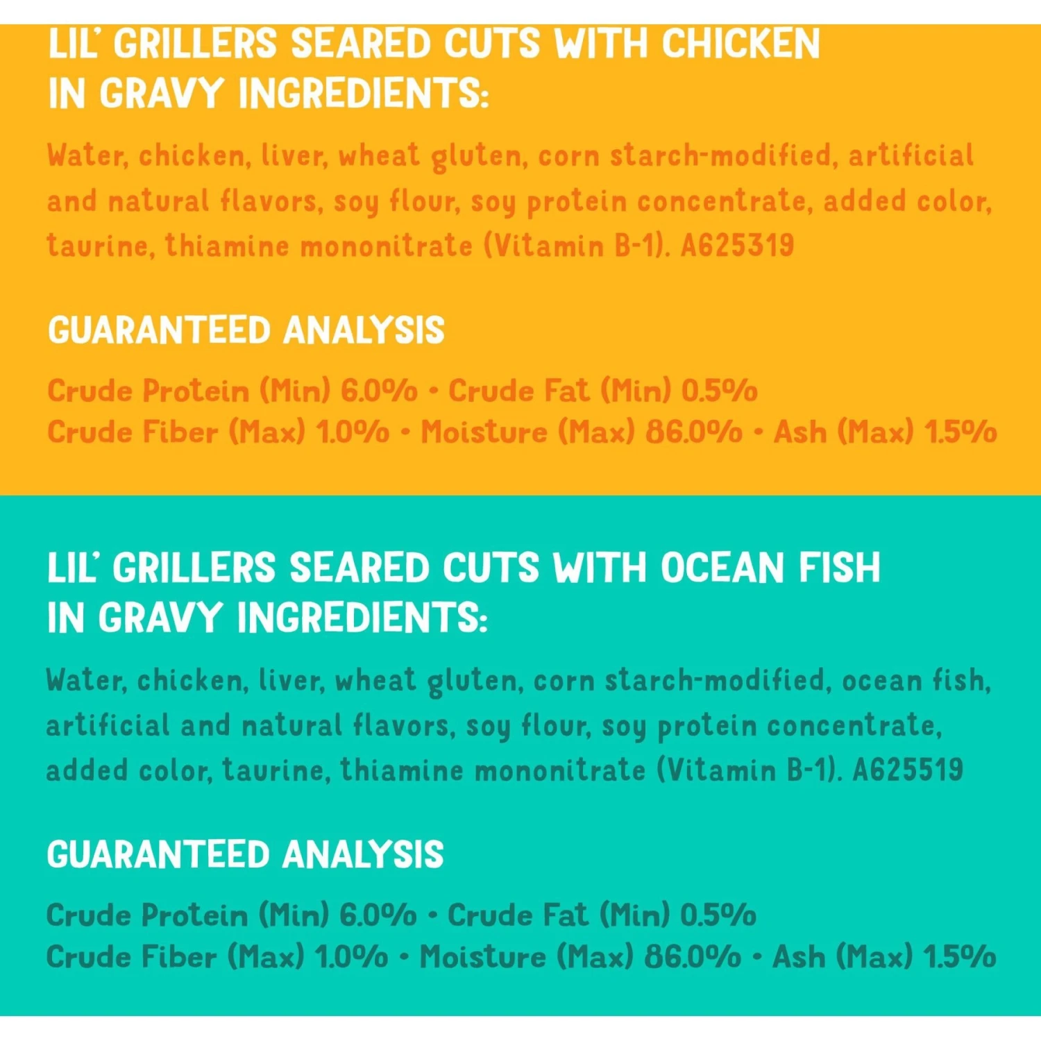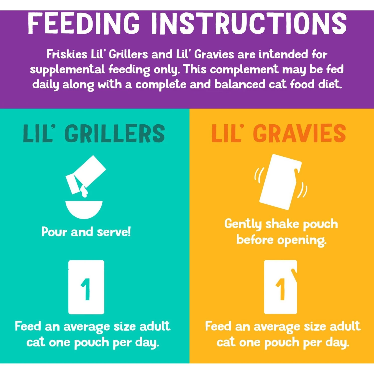 - Lil’ Grillers and Lil’ Gravies pouch cat food complements give you two delicious lil’ ways to surprise and delight your cat!