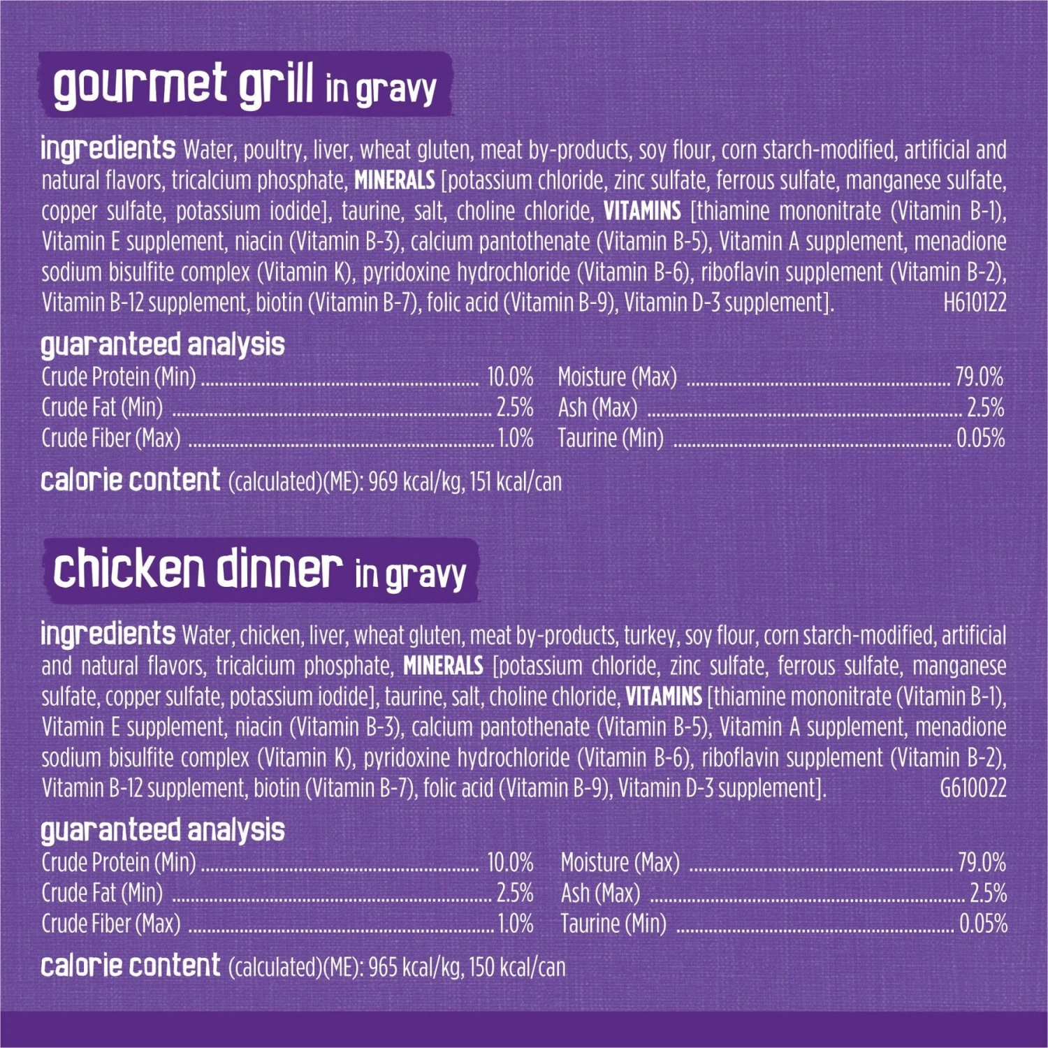 | Flavor | Chicken Dinner, Gourmet Grill, Beef, Variety Pack |