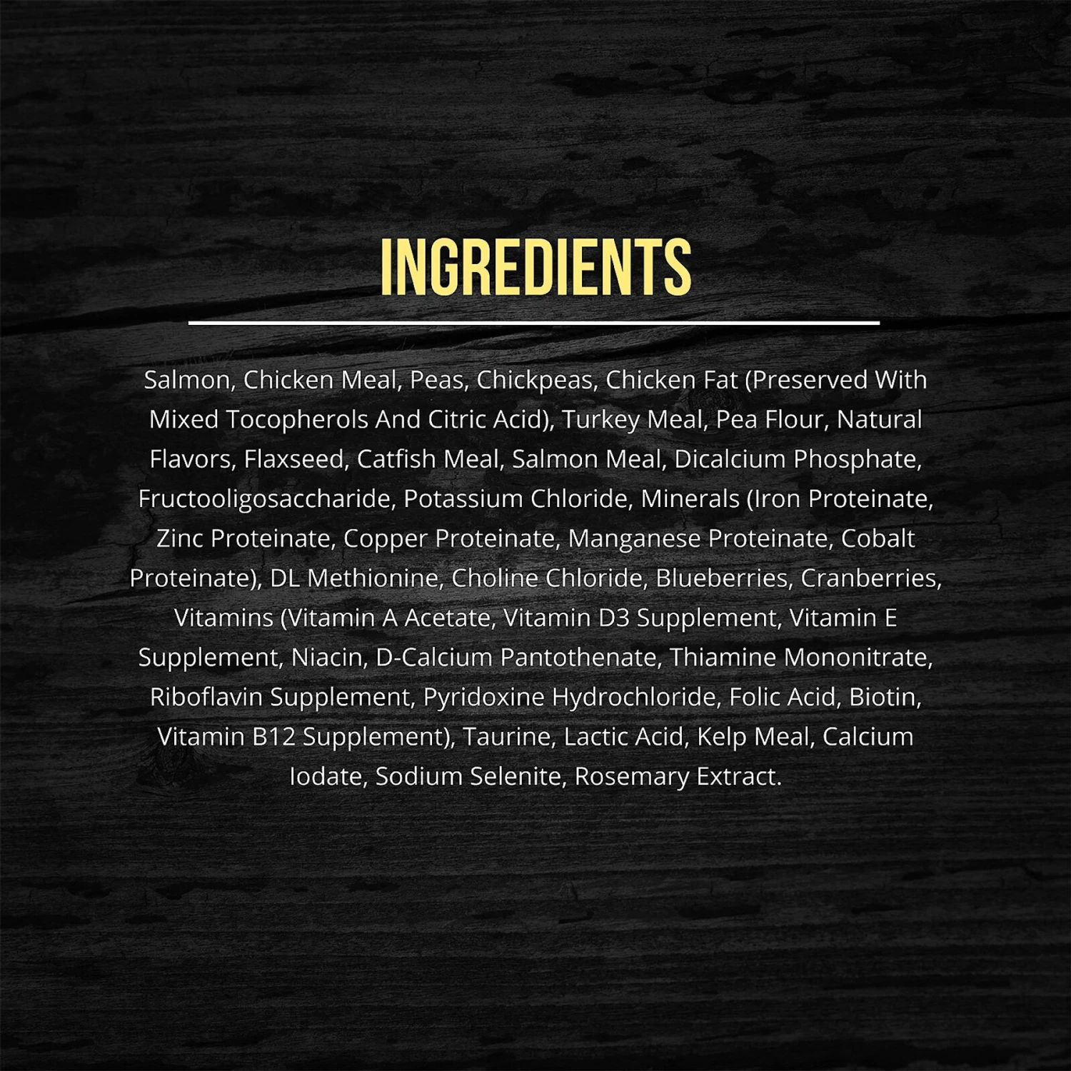 | Flavor | Salmon & Chicken, Salmon, Quail & Duck Meal, Guinea Fowl & Turkey Meal, Chicken & Turkey |