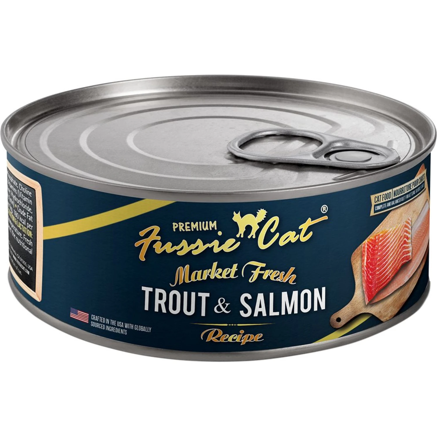 Be the first to review “Fussie Cat Market Fresh Trout & Salmon Wet Cat Food, 5.5-oz Can, Case Of 24” Cancel reply