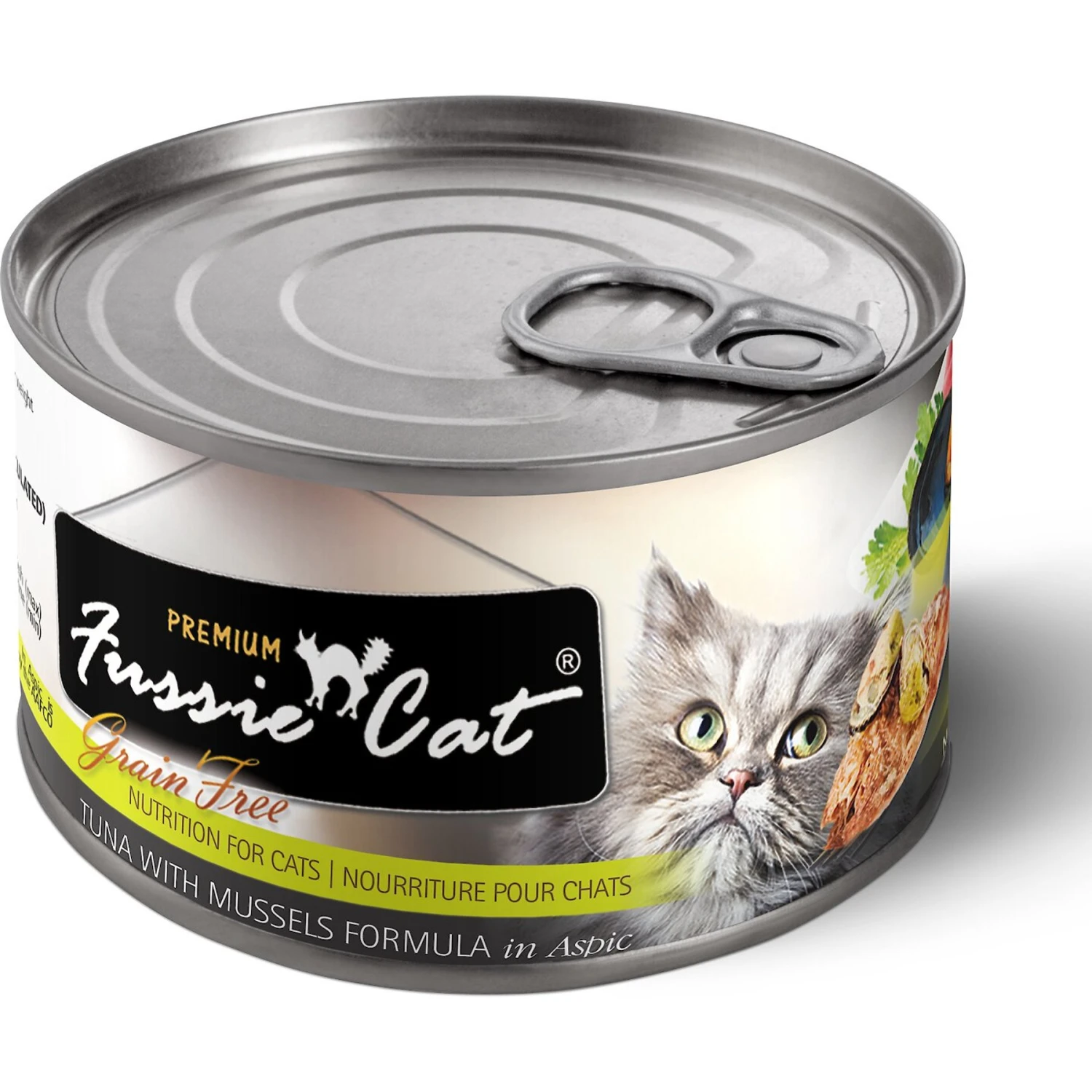 The Fussie Cat Premium Tuna with Mussels Formula in Aspic Grain-Free Canned Cat Food starts with tasty tuna and mussels. The recipe is low in carbs and includes the essential vitamins and minerals your kitty needs to be healthy and happy. It’s free of grains and potato, making it purr-fect for cats with food sensitivities or allergies. It’s also a great source of omega-3 and -6 fatty acids to support skin and coat health to keep your kitty looking and feeling paw-some.