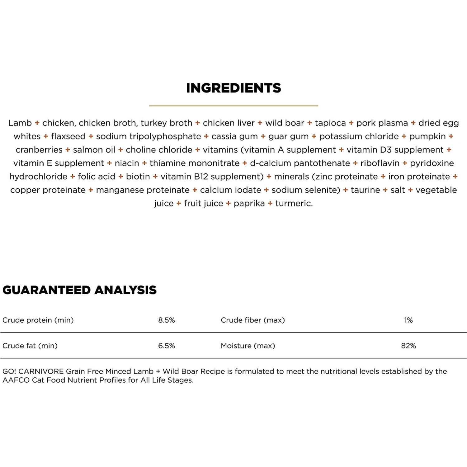 Be the first to review “Go! Solutions Carnivore Grain-Free Minced Lamb + Wild Boar Cat Food” Cancel reply