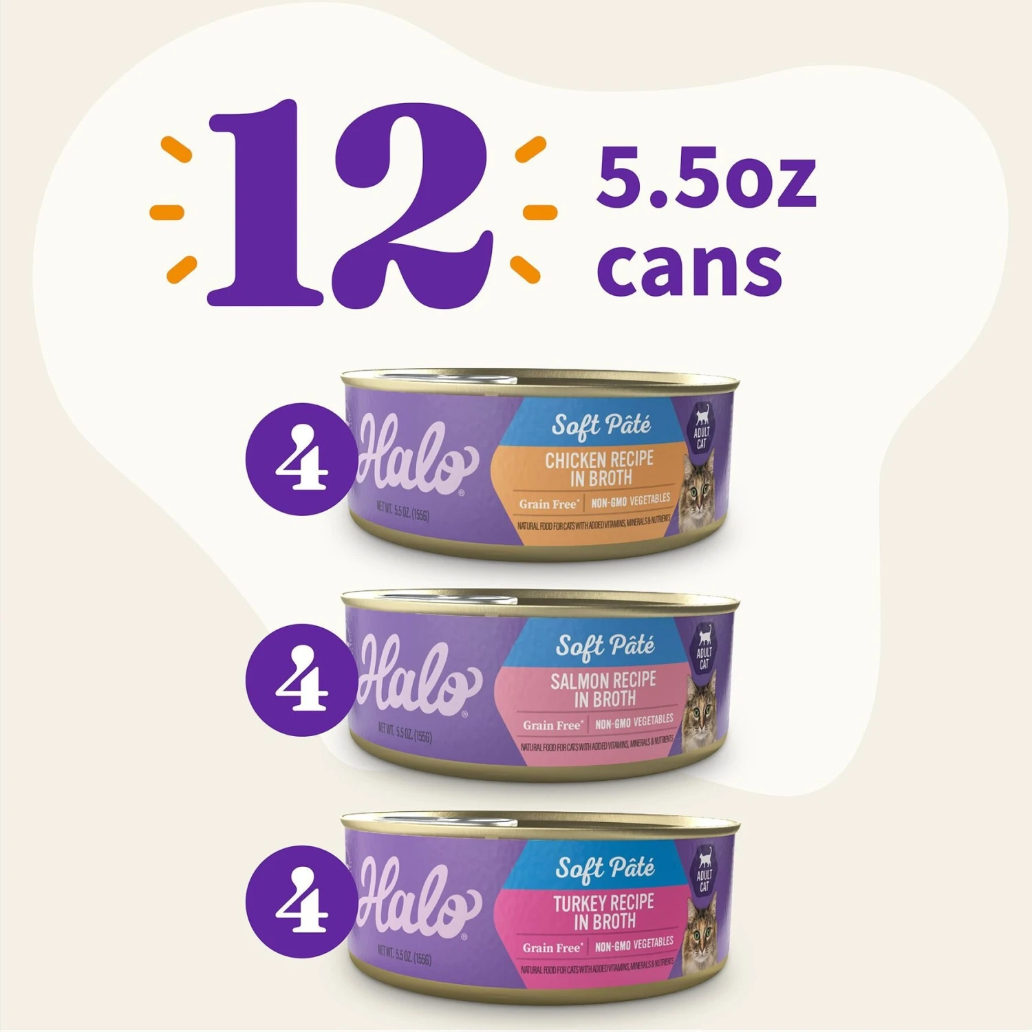 Be the first to review “Halo Chicken, Salmon, Turkey Variety Pack Adult Grain-Free Pate Wet Cat Food” Cancel reply
