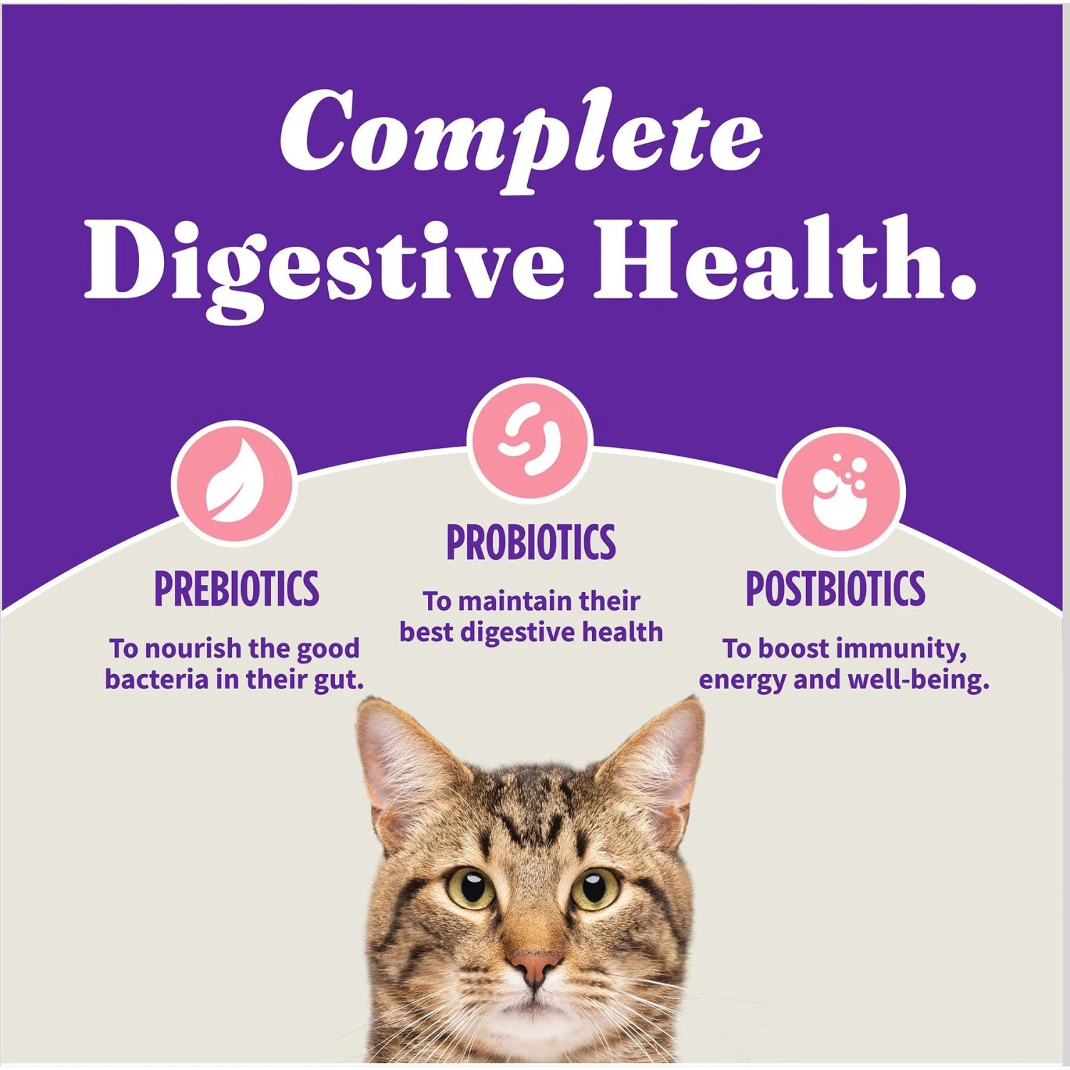 - Contains prebiotics, probiotics and postbiotics that help support your cat’s immune system and her digestive health.