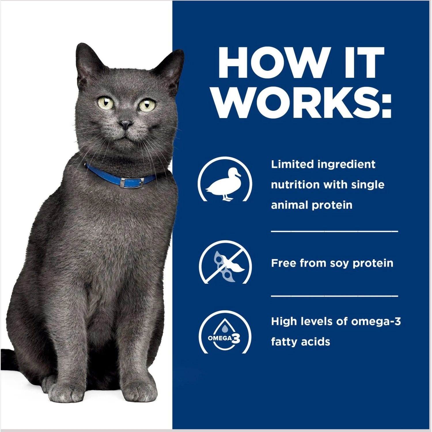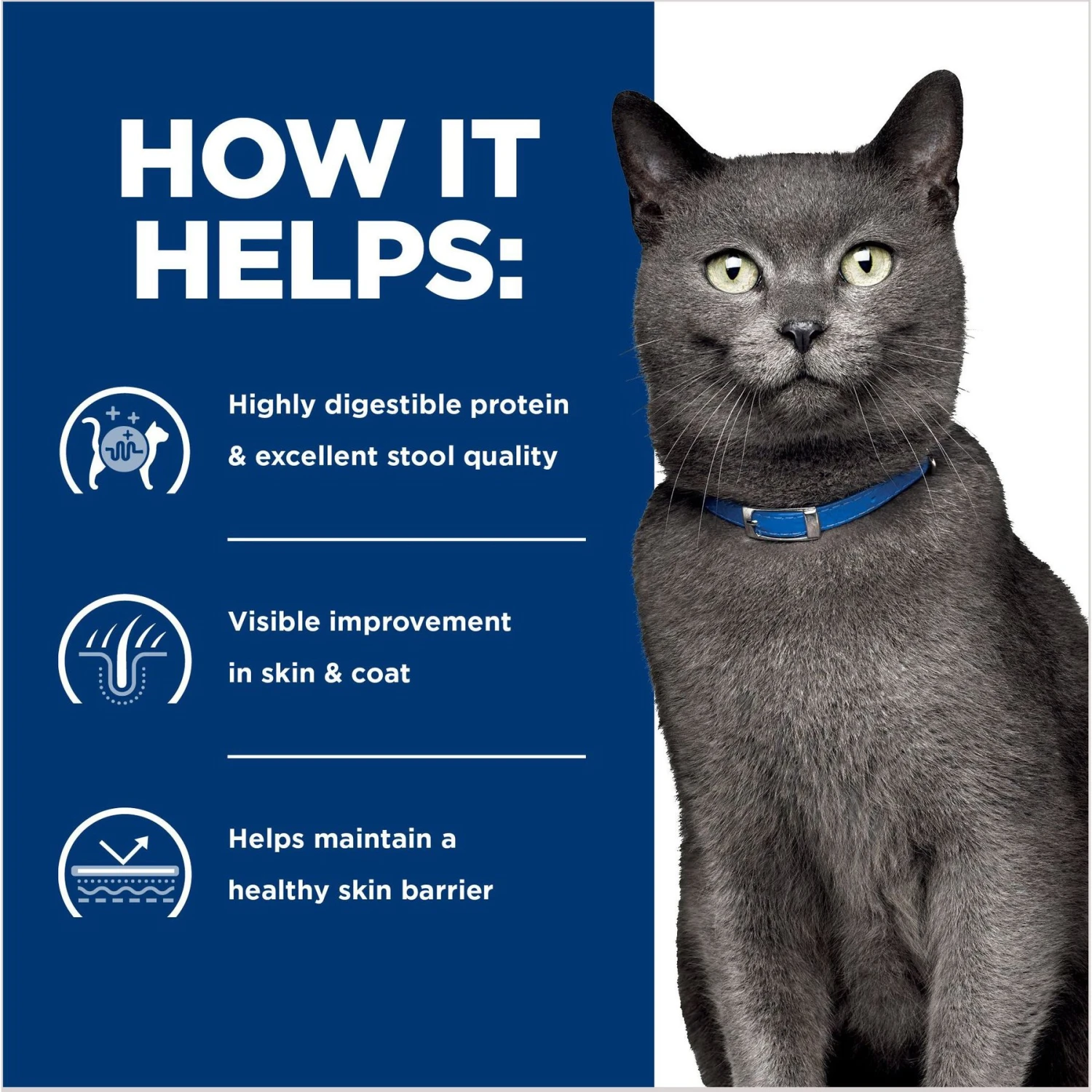 - Clinical nutrition especially formulated to help cats with a variety of skin conditions, and digestive discomfort due to food sensitivity
