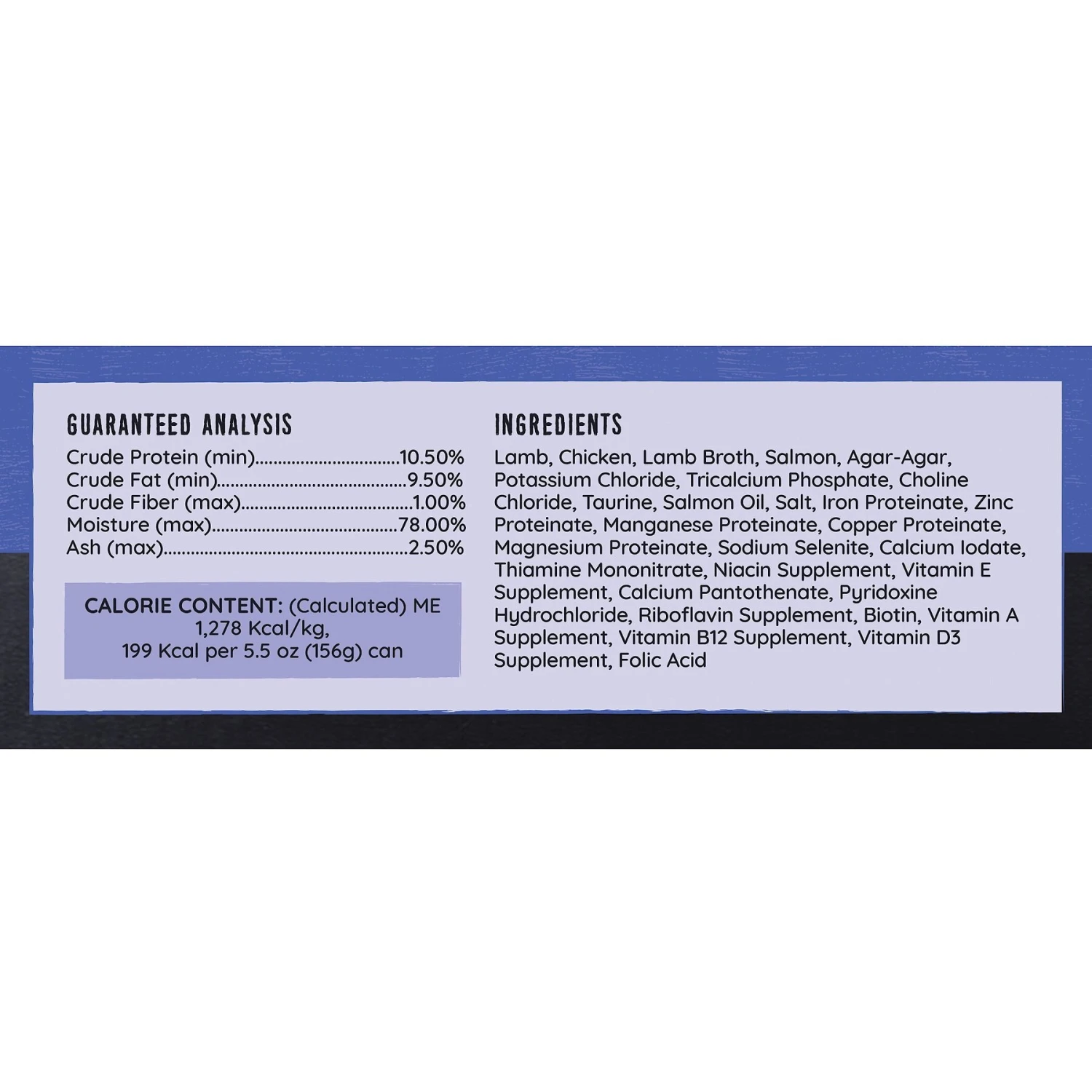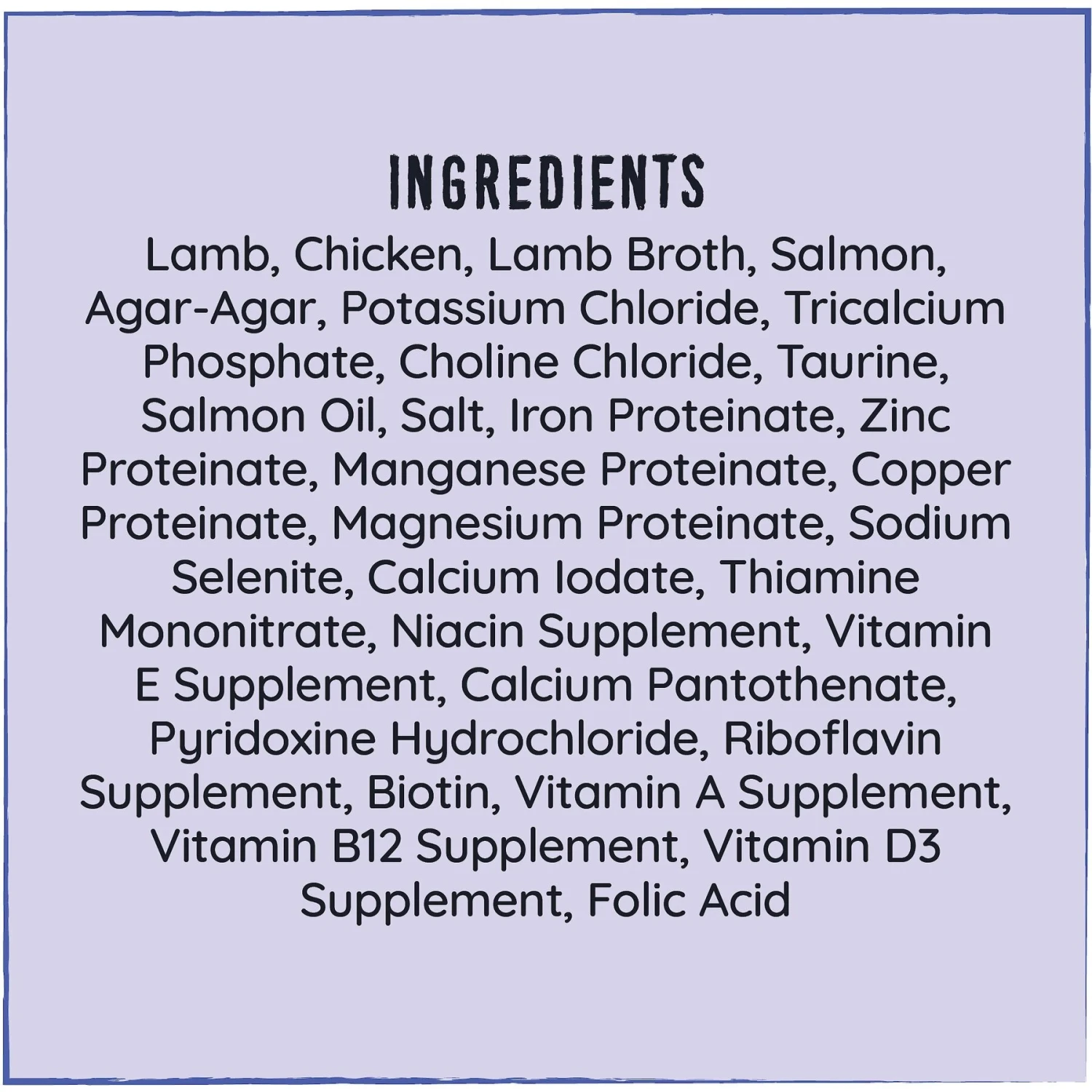 - Made from high-quality lamb, chicken and salmon with 98% of the protein coming from an animal.