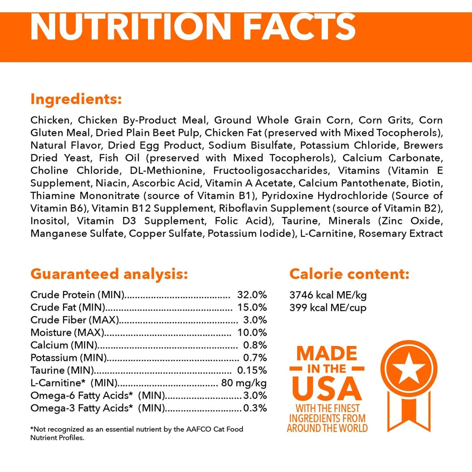 - Dry kibble to support adult cats’ overall health and provide energy.