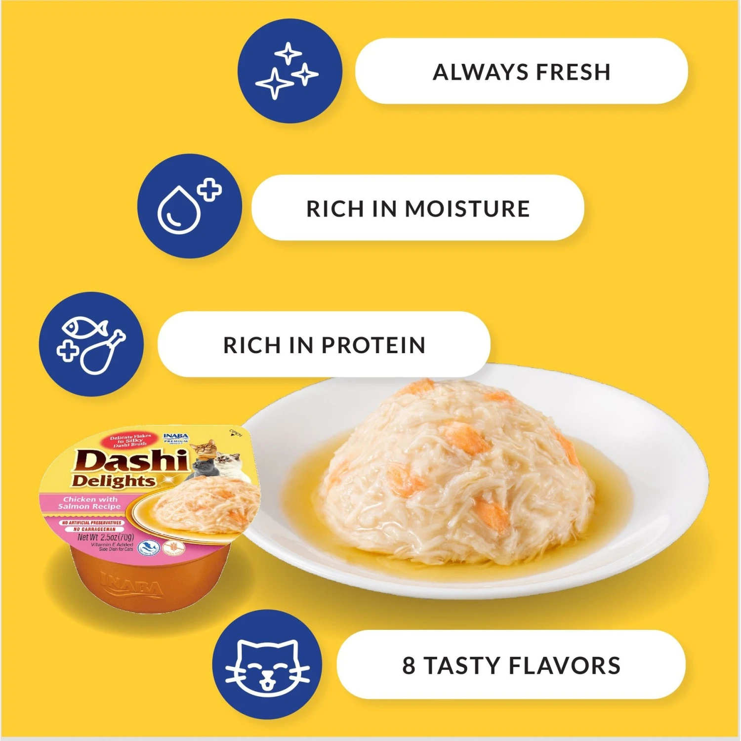 | Flavor | Chicken with Cheese, Tuna Variety Pack, Chicken with Tuna, Chicken with Scallop, Chicken with Tuna & Salmon, Seafood Variety Pack, Chicken with Salmon, Chicken & Bonito Flakes, Chicken Variety Pack, Chicken with Tuna & Scallop, Chicken |