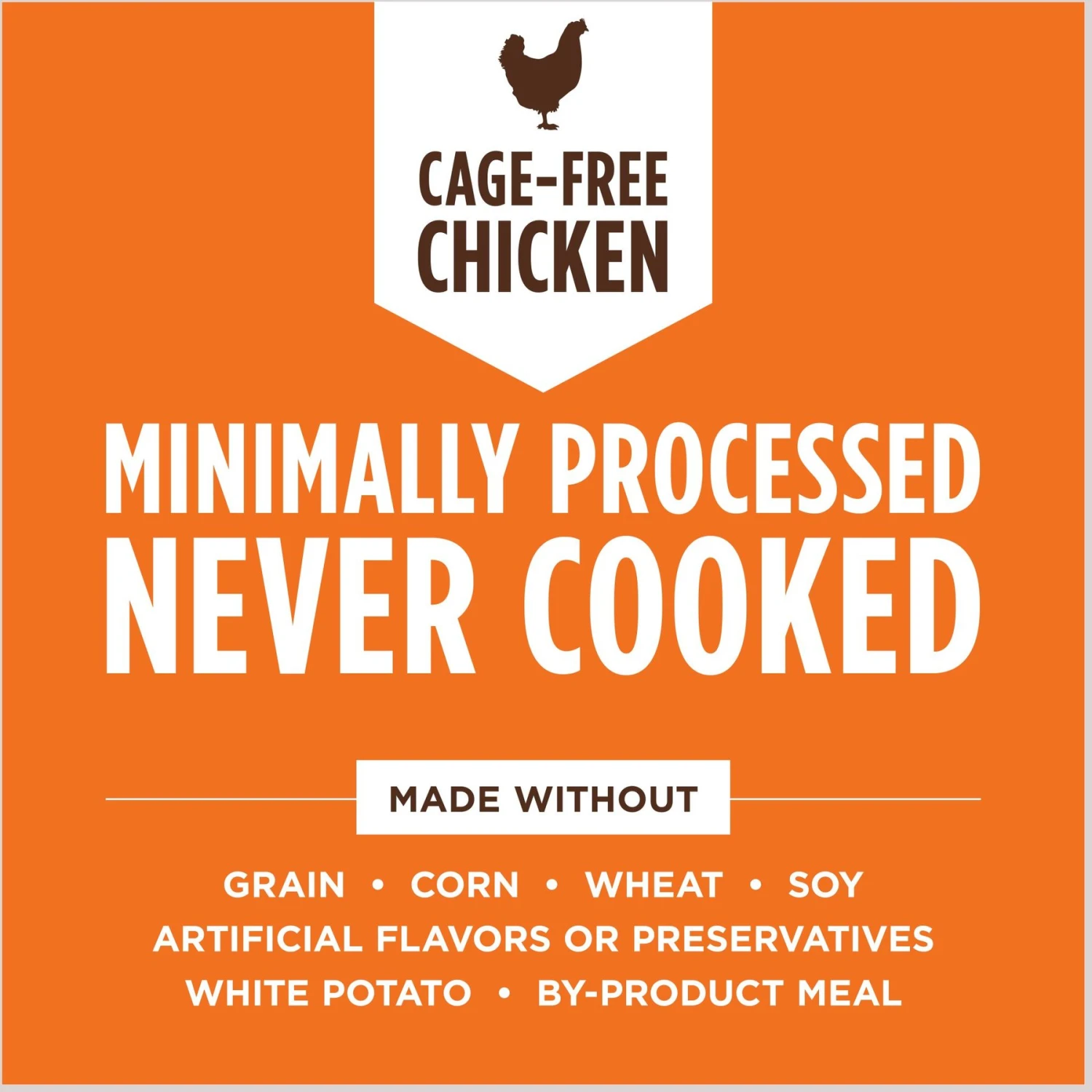 - Crafted with real cage-free chicken first, followed by other whole-food ingredients like pumpkin, sweet potato, chicory root and apple cider vinegar.