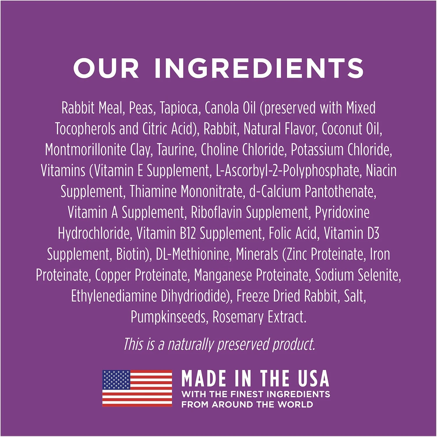 - Made with farm-raised rabbit, an easily digestible protein that provides all the essential amino acids your kitty needs.