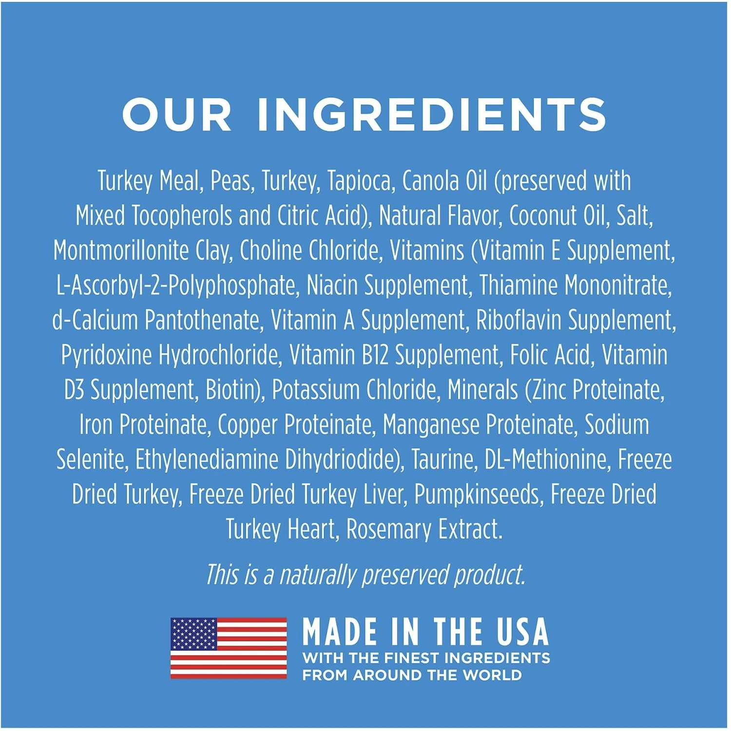 - Made with cage-free turkey, a healthy, easily-digestible protein that provides all the essential amino acids.