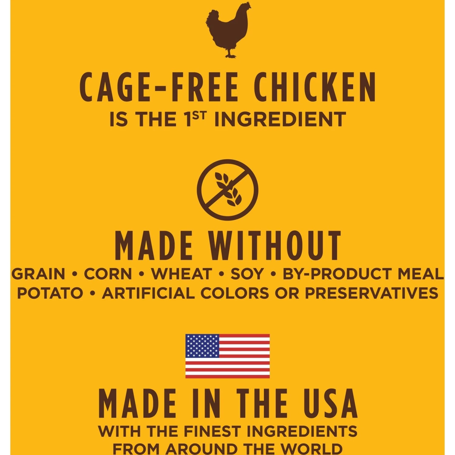 - Cage-free chicken is the first ingredient for high animal protein to support strong, lean muscles.