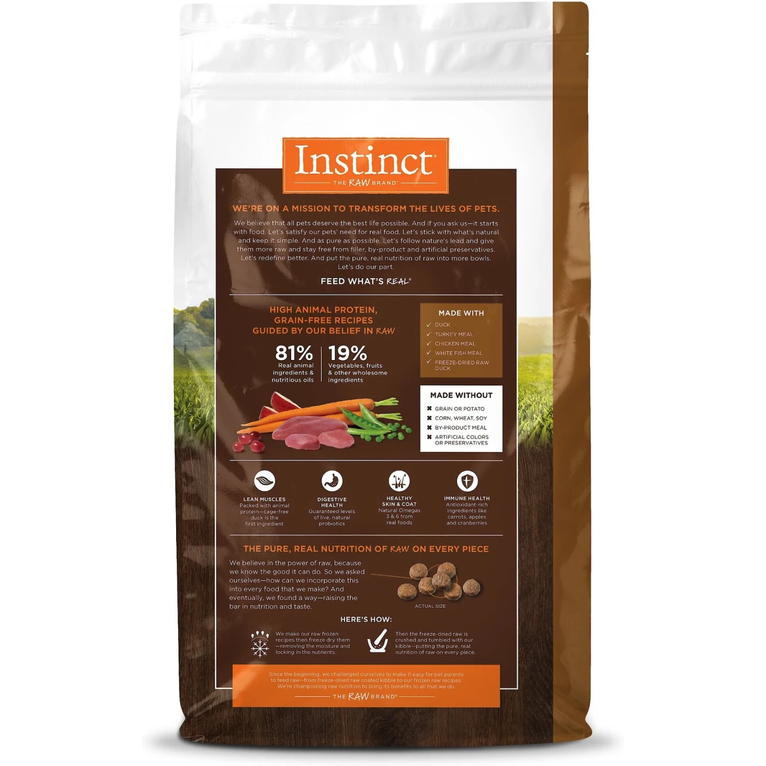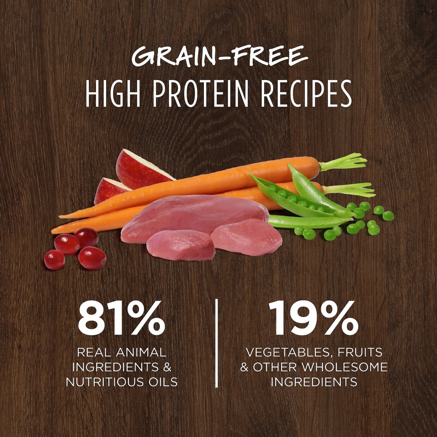 - Features 81% real animal ingredients and nutritious oils, plus 19% fruits, vegetables and other wholesome ingredients.