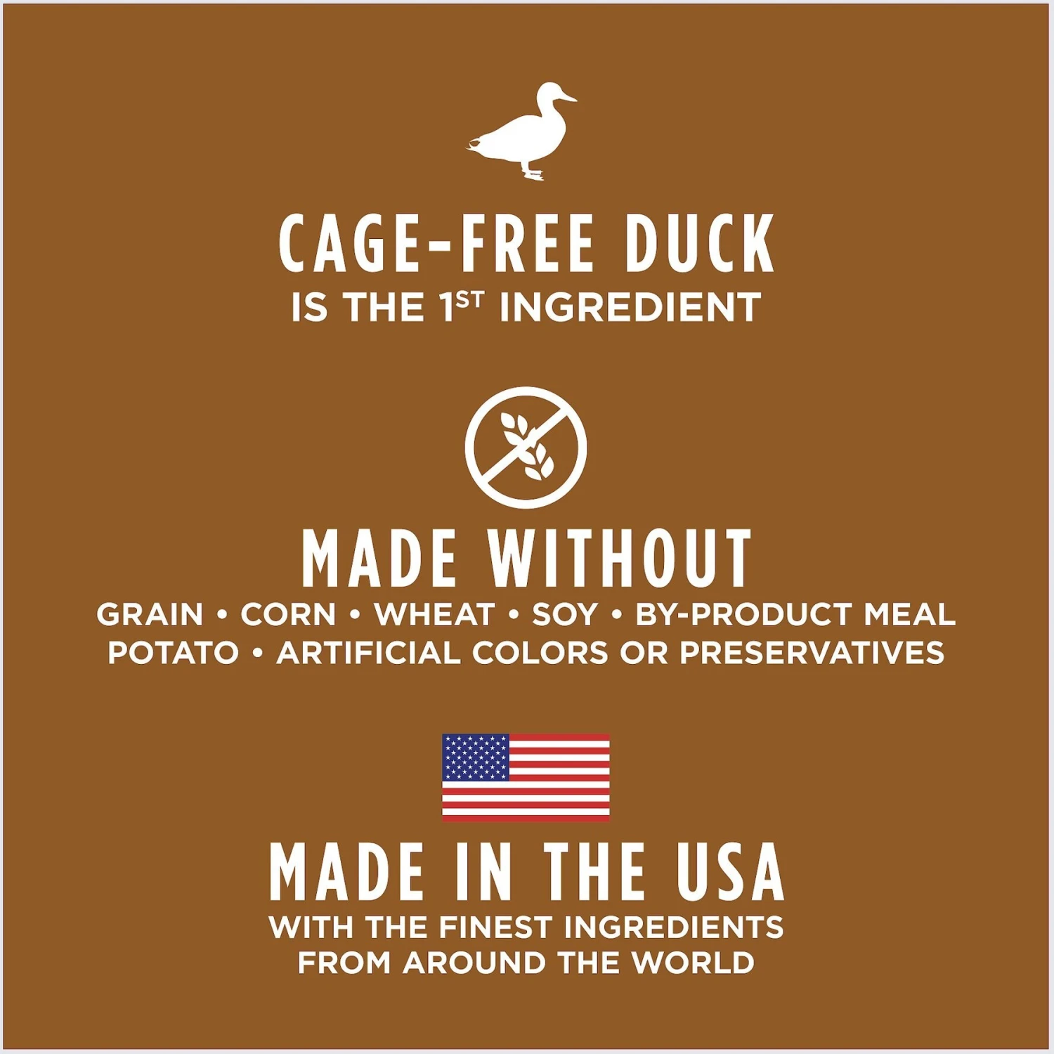 - Cage-free duck is the first ingredient for high animal protein to support strong, lean muscles.