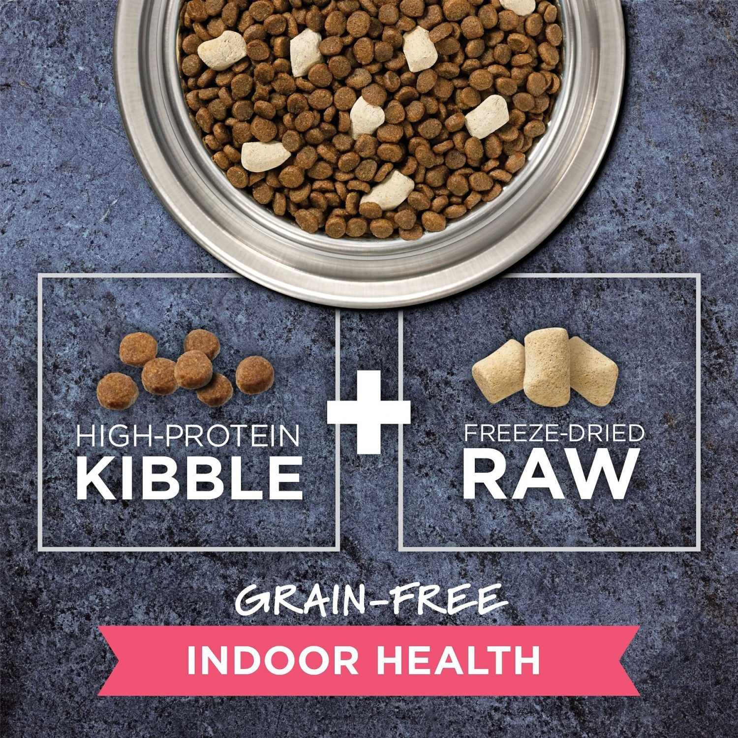 - Boosted nutrition for indoor cats with high-protein kibble + freeze-dried raw.