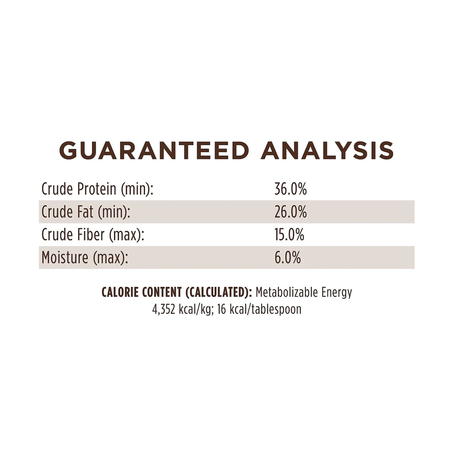 - Raw, whole-food ingredients are freeze dried to gently remove the moisture and lock in nutrients and flavor.