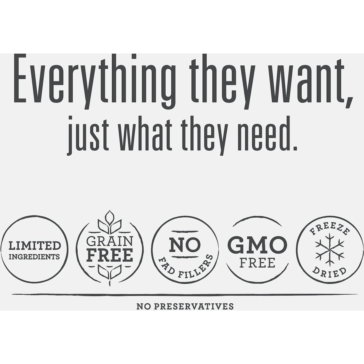 - Complete and balanced diet made without grains, preservatives, fad fillers or GMOs.