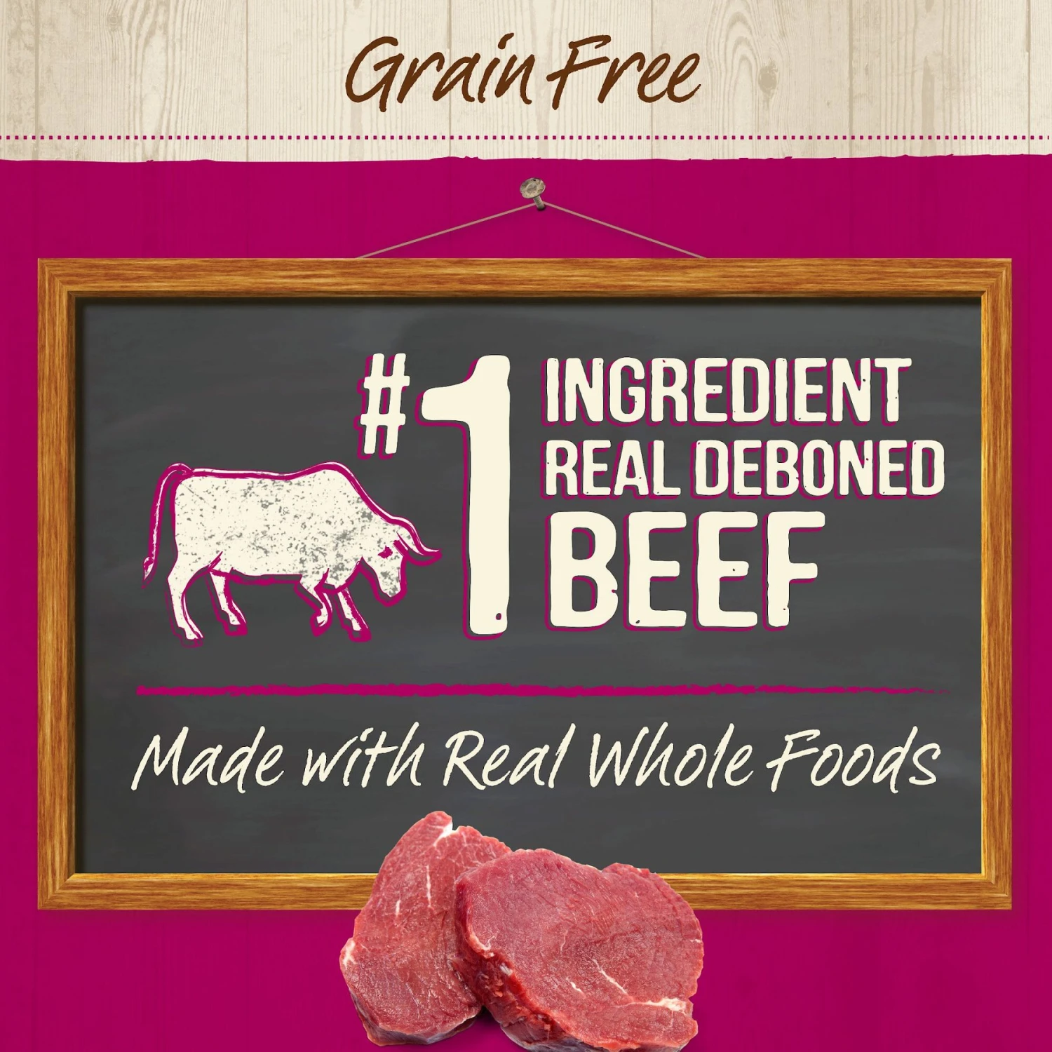 - Grain-free recipe features protein-rich beef as the first ingredient for the nutrients to support healthy muscles and energy.