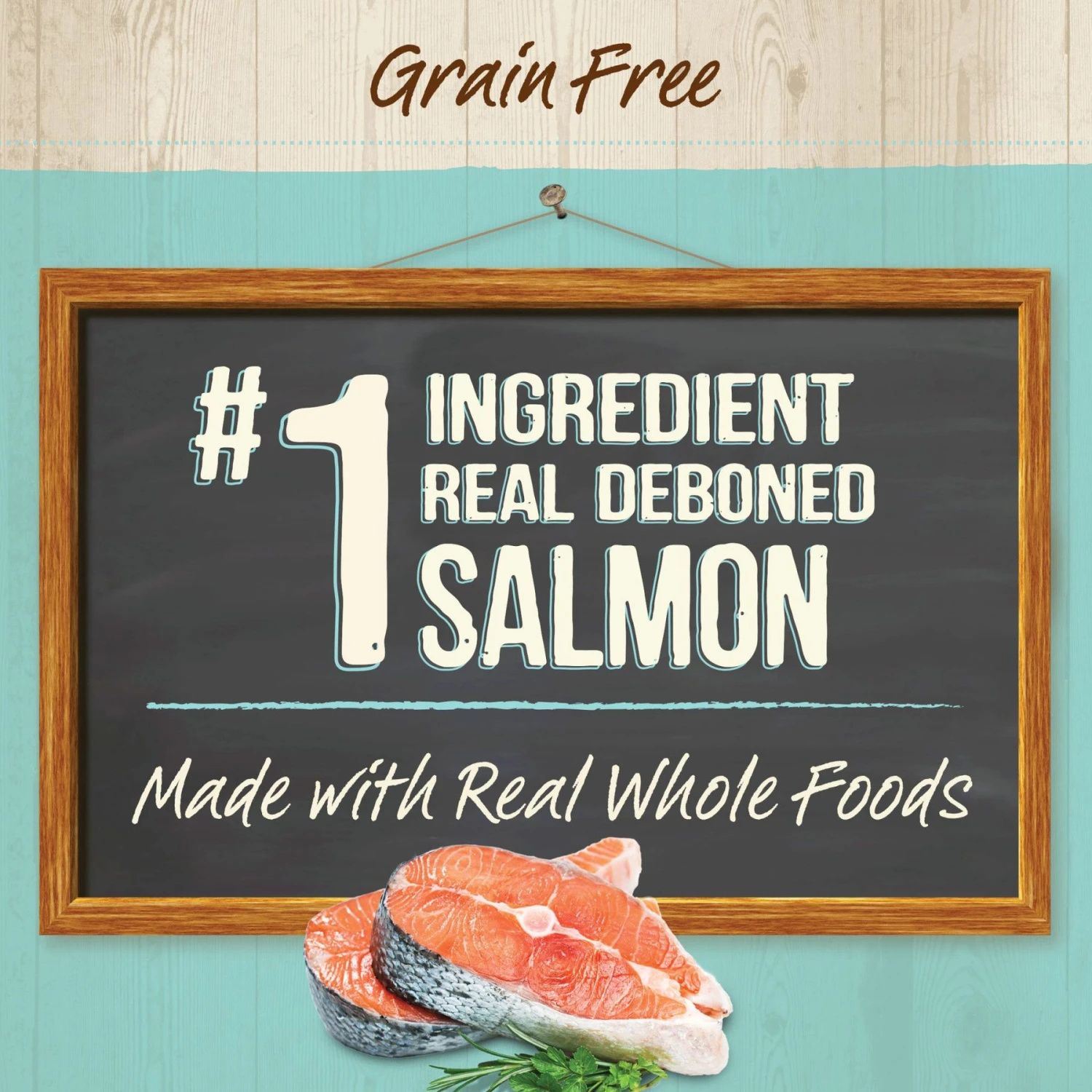 - Real, deboned salmon is always the first ingredient in this high-protein cat food.