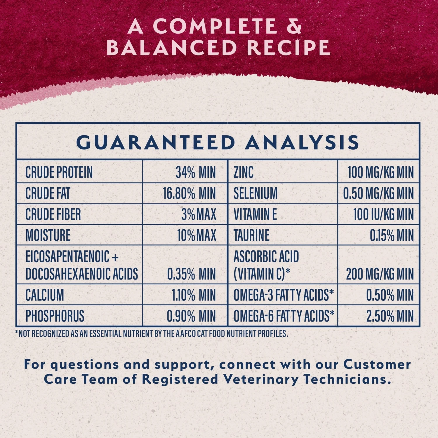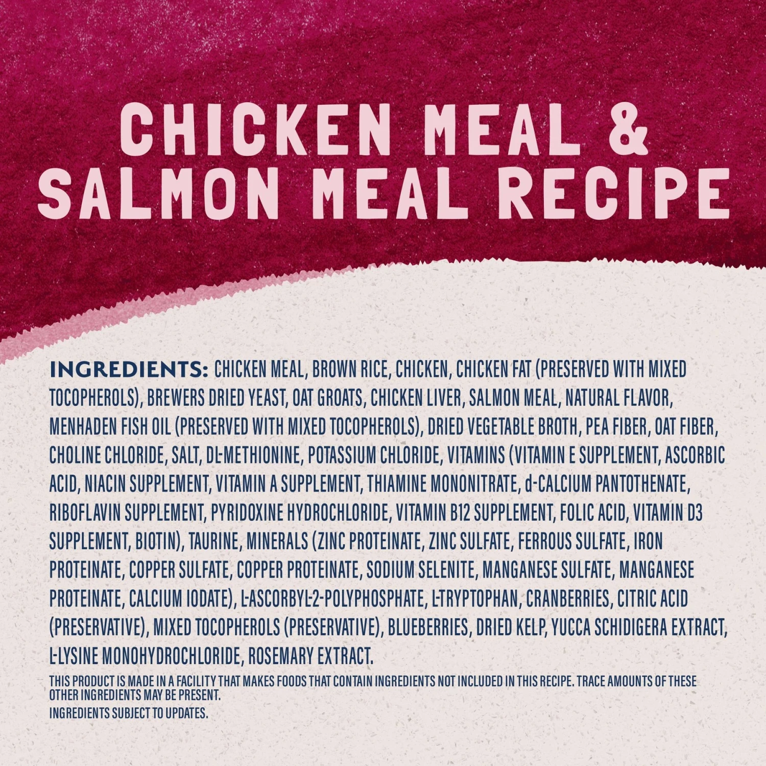 - Formulated with balanced omega-6 and -3 omega fatty acids and high-quality protein to support skin and coat health.