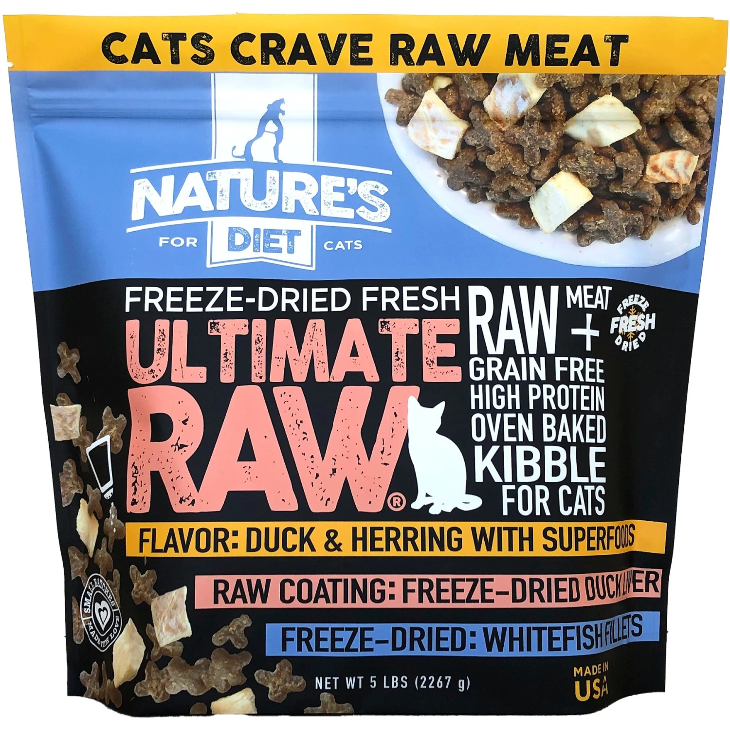 Be the first to review “Nature’s Diet Ultimate Raw Duck Liver Coated Kibble With Whitefish Filet Inclusions Freeze-Dried Cat Food, 5-lb Bag” Cancel reply