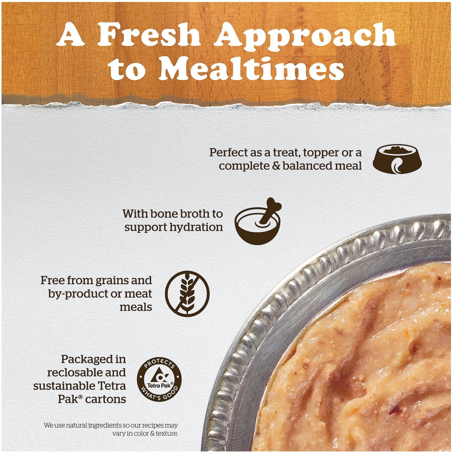 - Comes in an easy-to-store, resealable, and recyclable carton and has no rendered meats, by-products, or artificial preservatives.