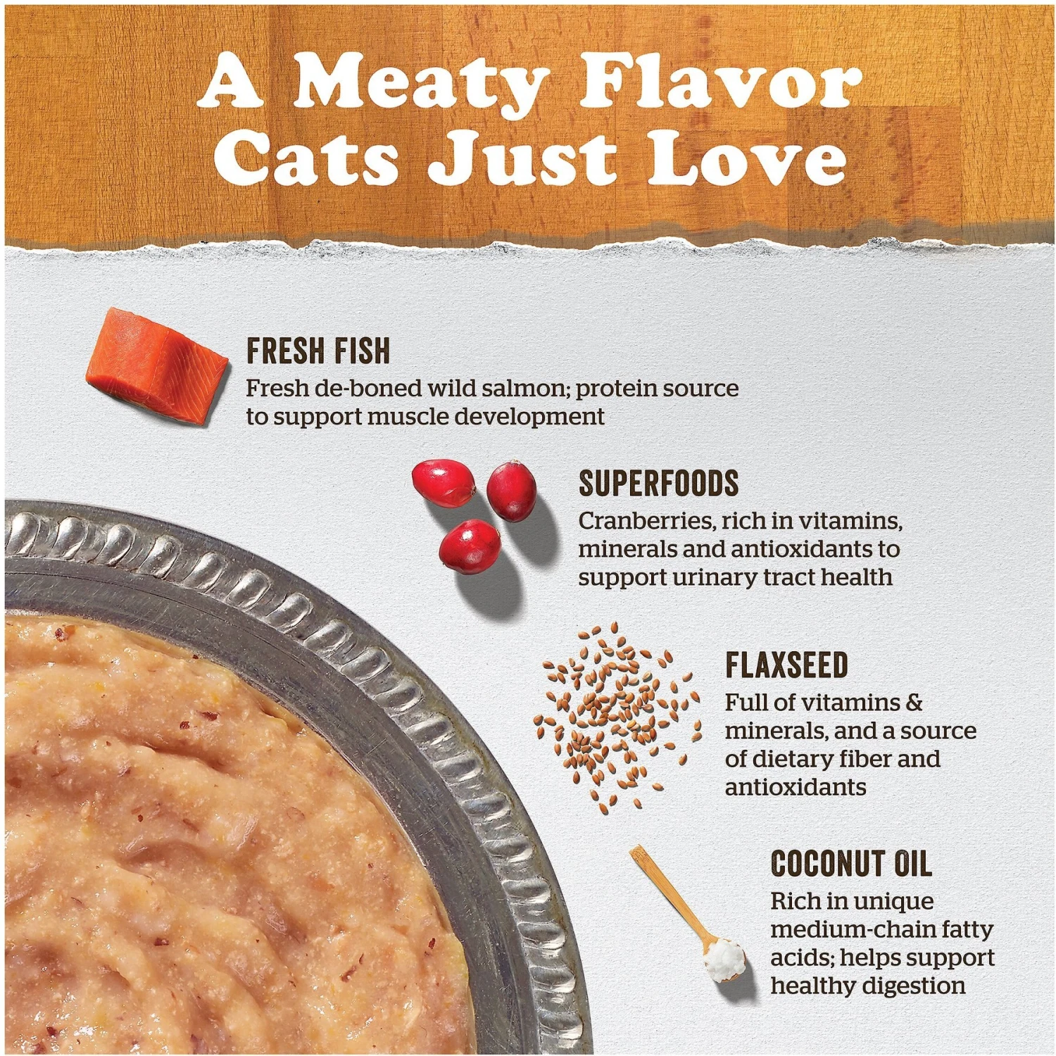 - Fresh salmon and turkey bone broth are the first ingredients so it’s packed with lean protein, collagen and kitty-approved flavor.