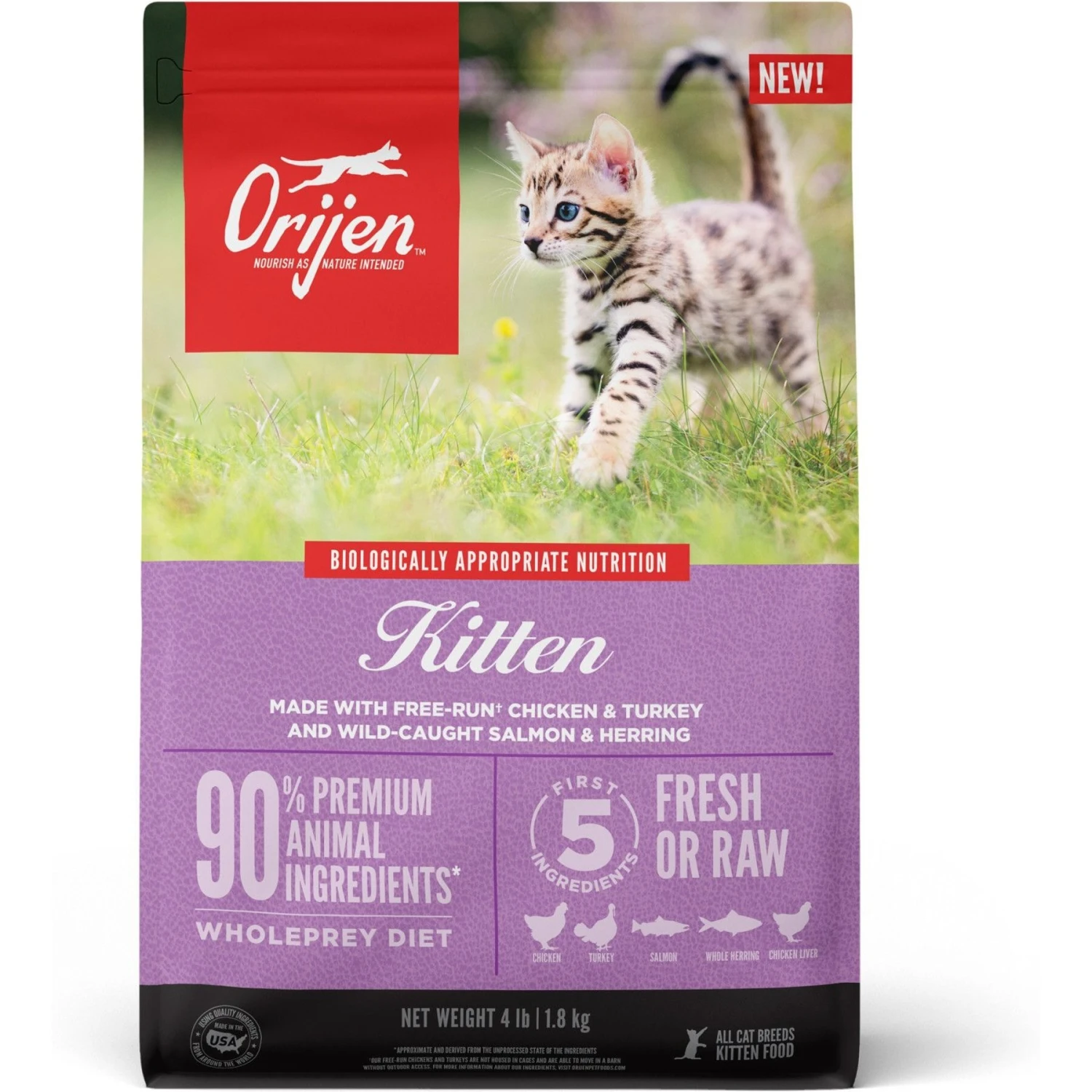 - Loaded with up to 90% animal ingredients, including ORIJEN WholePrey ingredients like organs and bones, the grain-free food lets your kitten eat like her ancestors did in the wild.