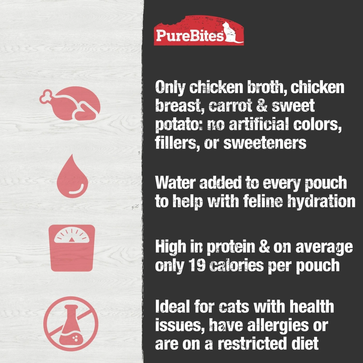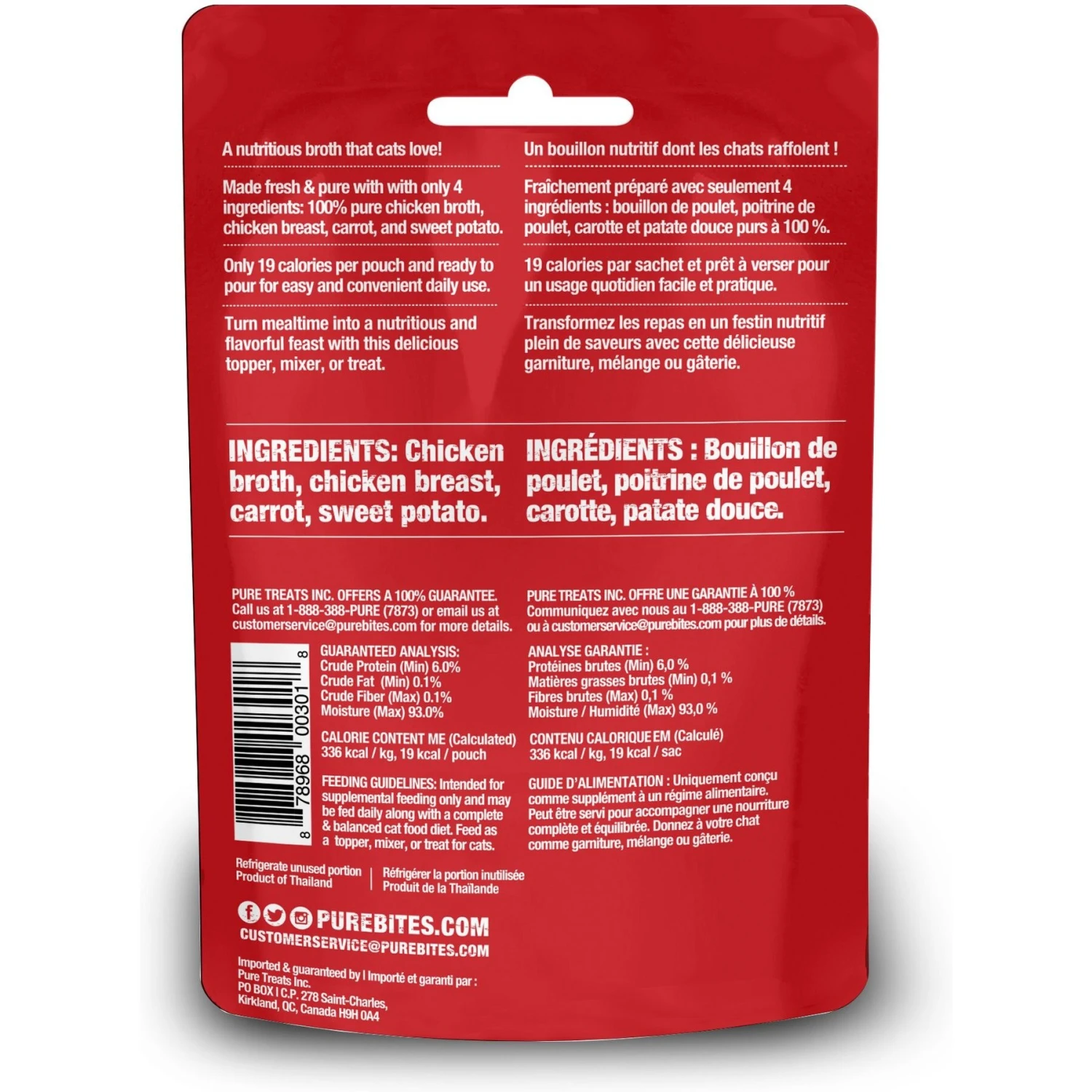 - Made with human-grade chicken broth, chicken breast, carrot, and sweet potato.
