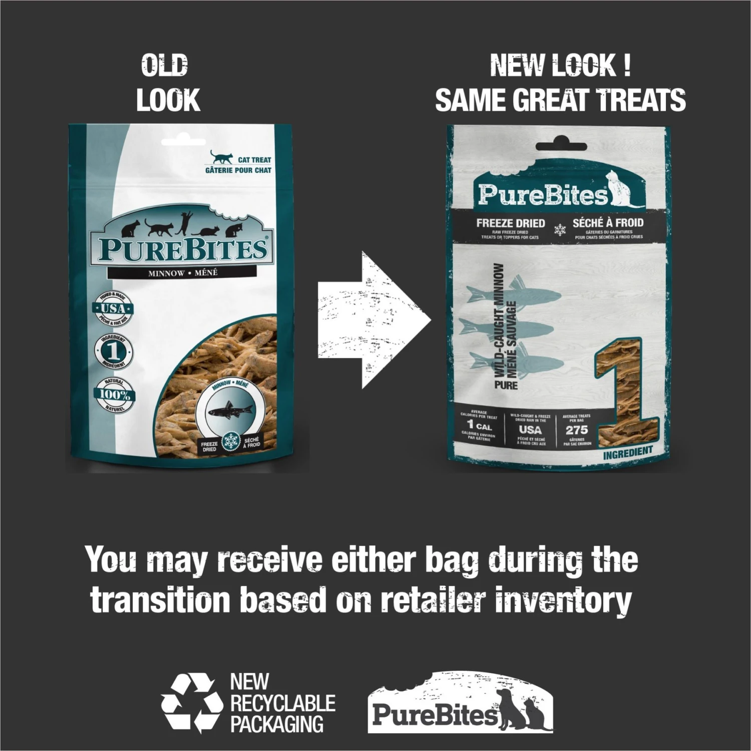 - Tasty treats made with just 1 ingredient – ocean-caught human grade minnows.