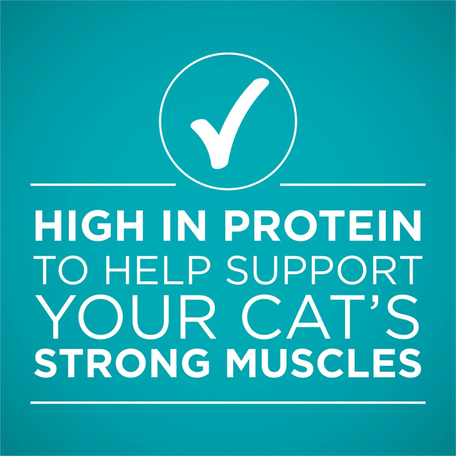 - Each serving is made with real chicken, plus this high-protein cat food helps support strong muscles.